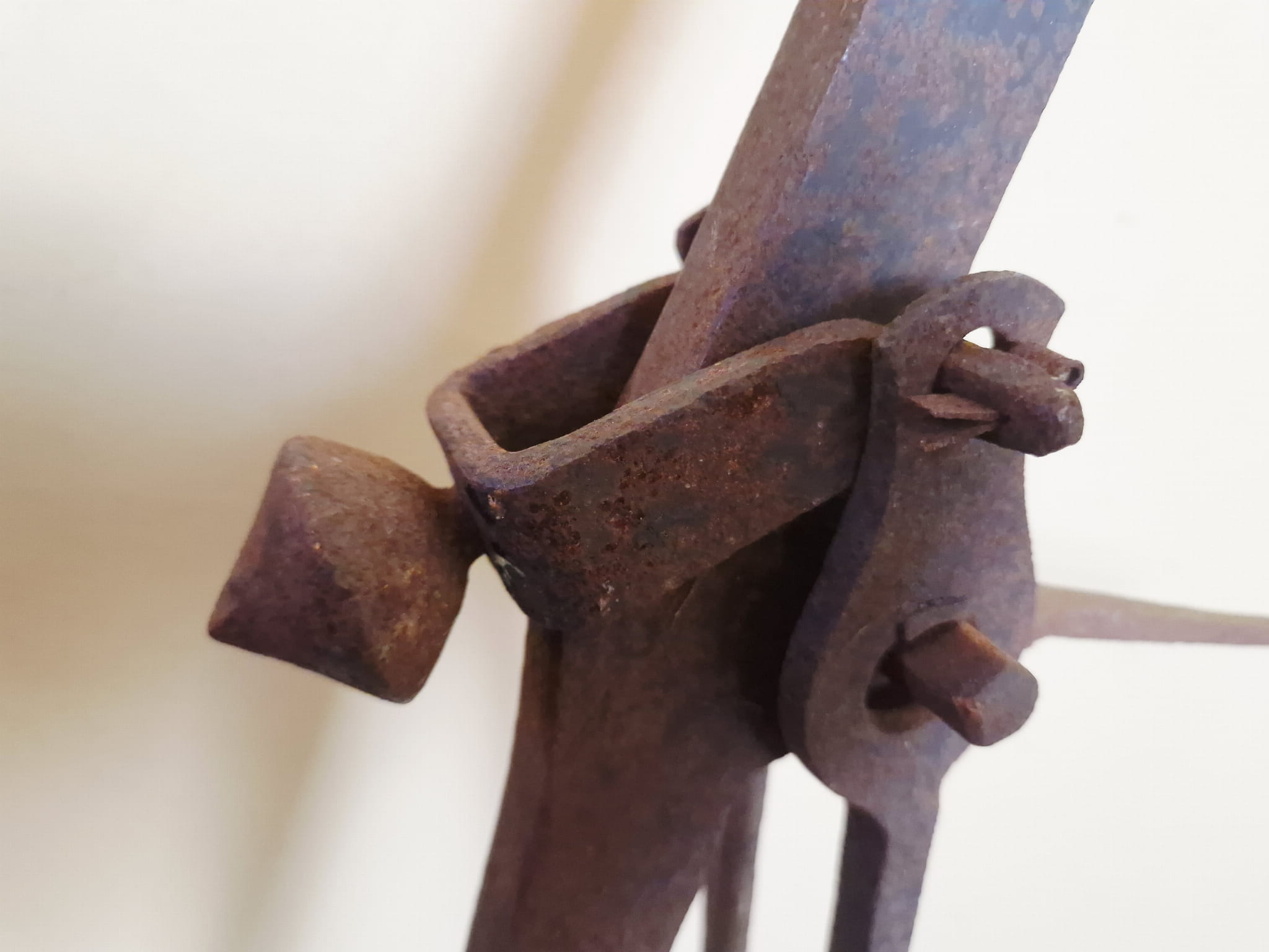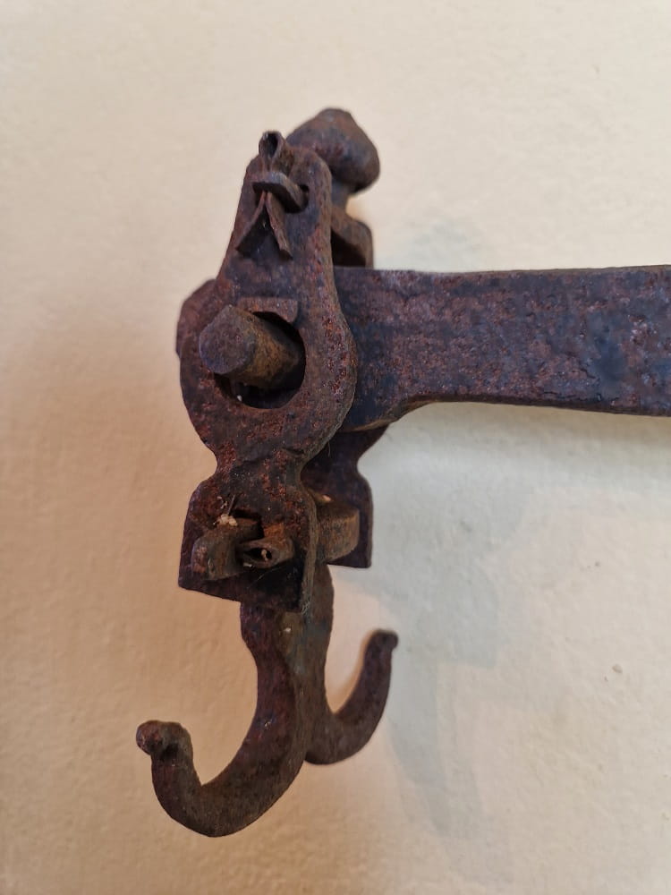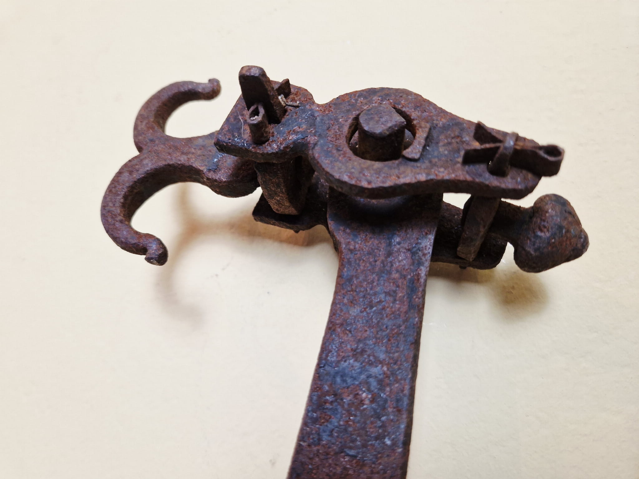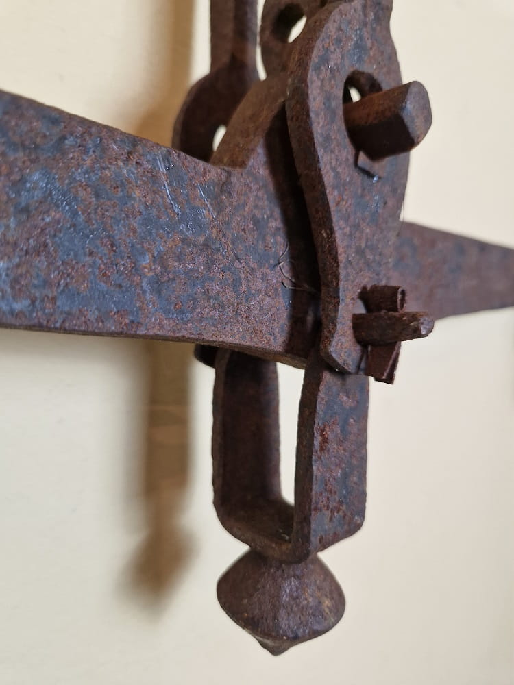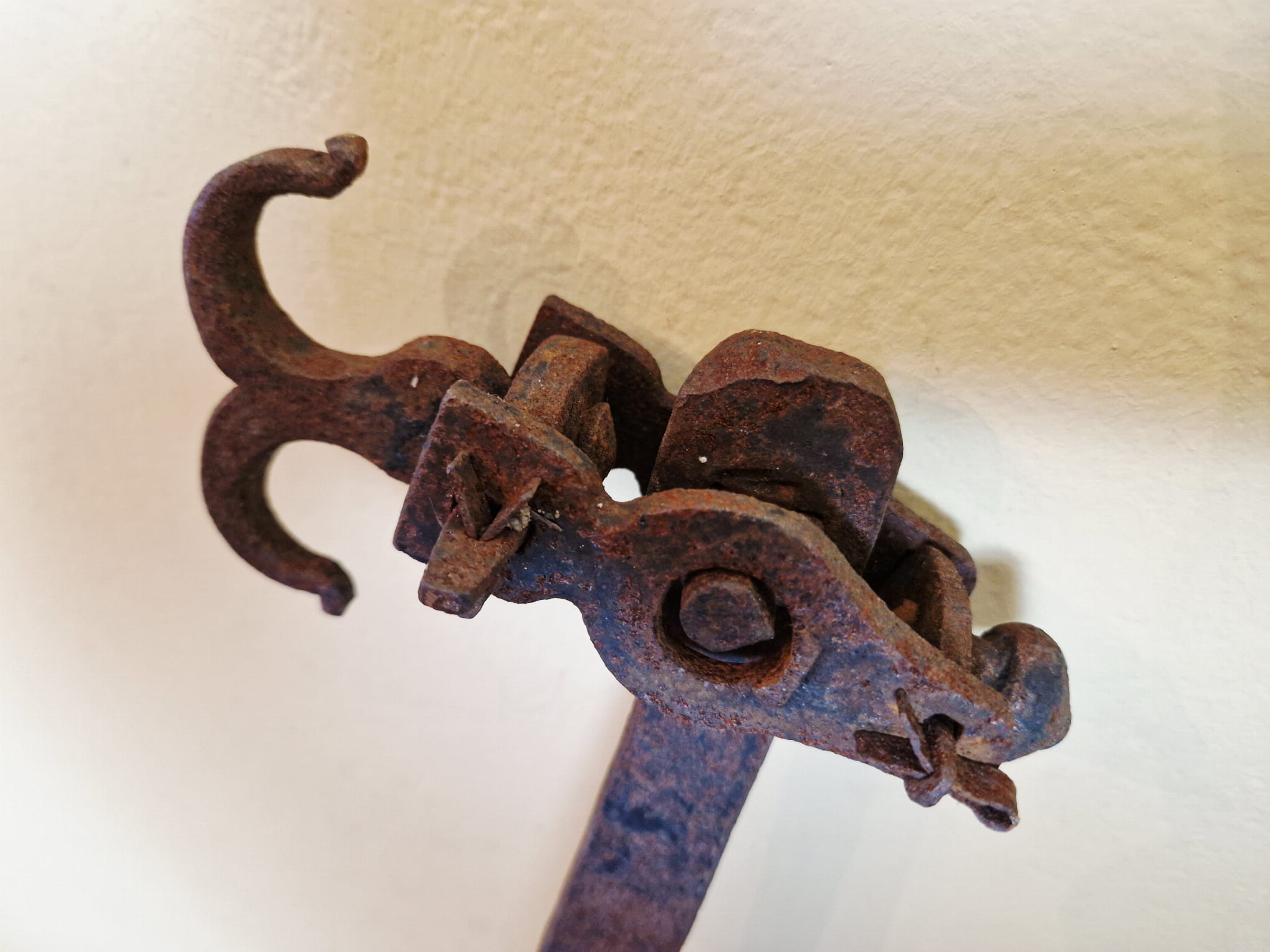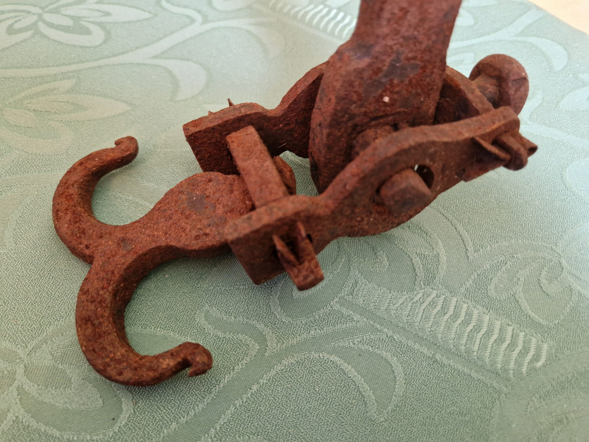 (XVIII / XIX w) ZABYTKOWA MASYWNA (94,5 cm / 2,14 kg) KUTA ŻELAZNA WAGA WISZĄCA