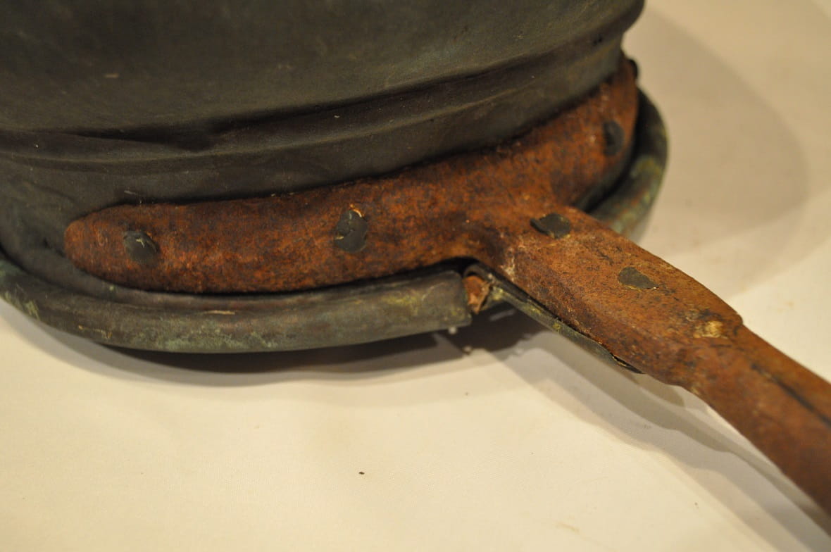 Gniazdo uchwytu (drewnianego) żelazne - nitowane miedzią - w dobrym stanie zachowania.