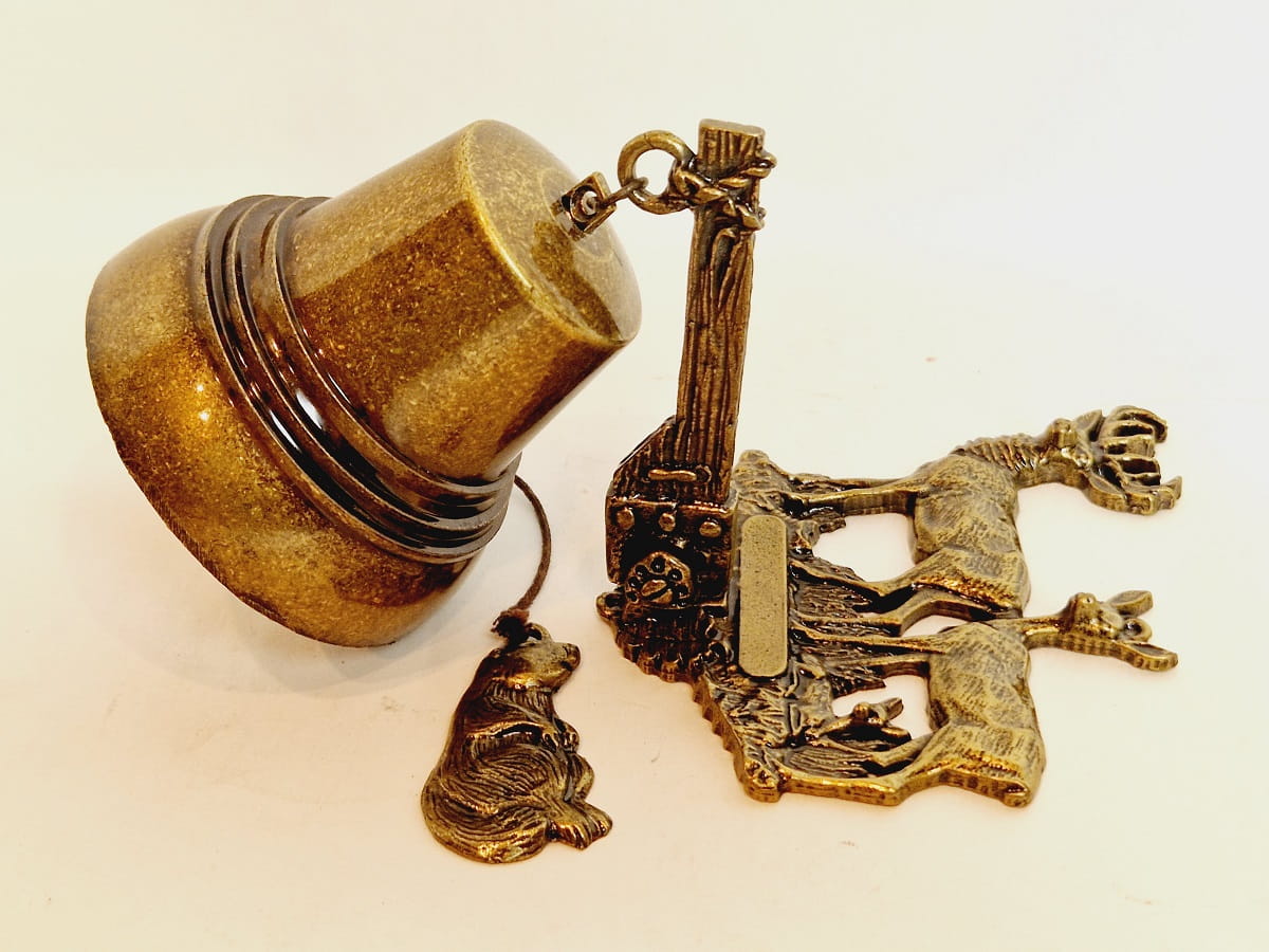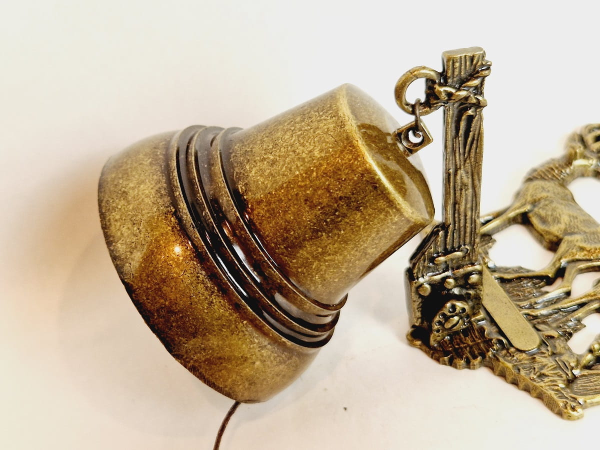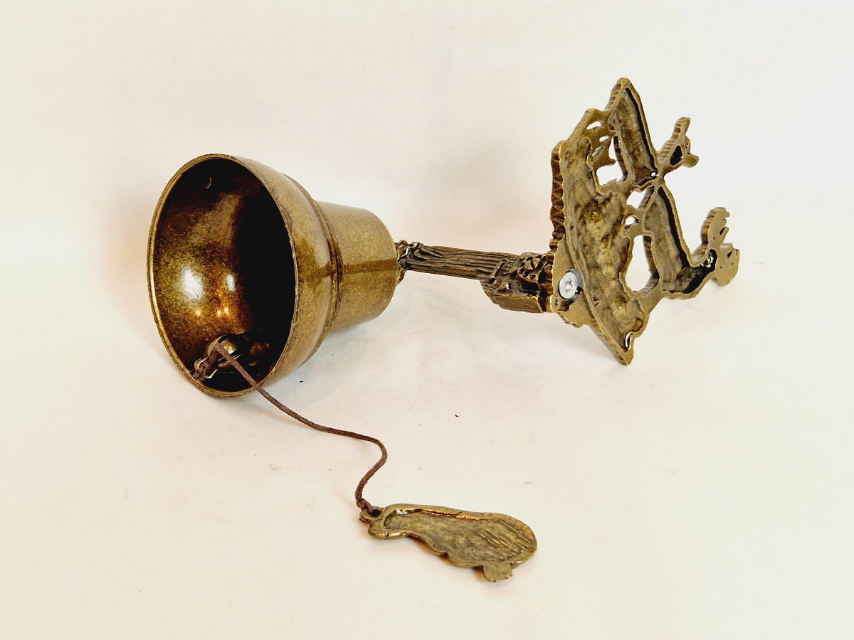 Dzwonek posiada figuralny (jelenie) bogato zdobiony wieszak - gotowy jest do zamocowania na ścianie...