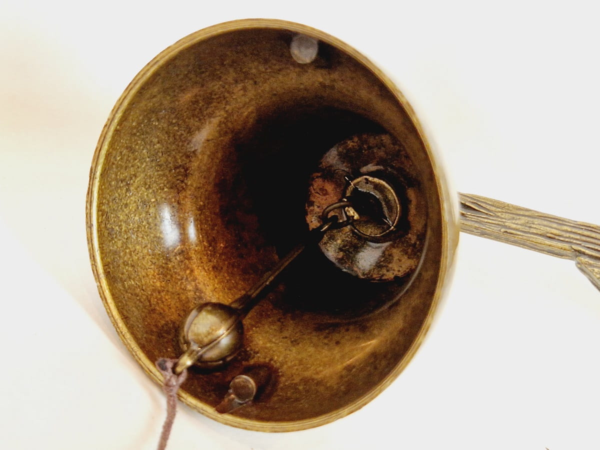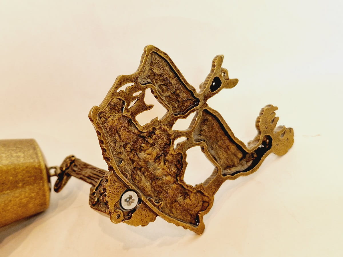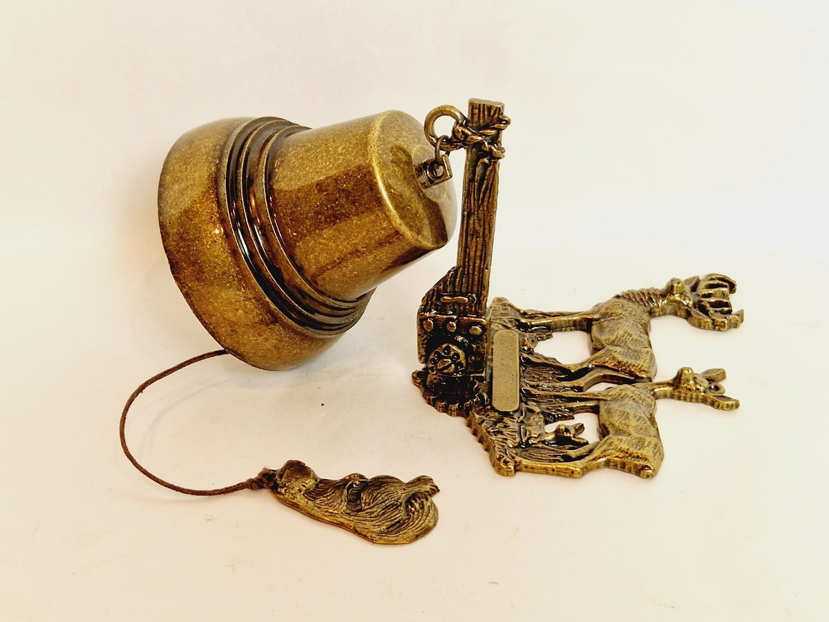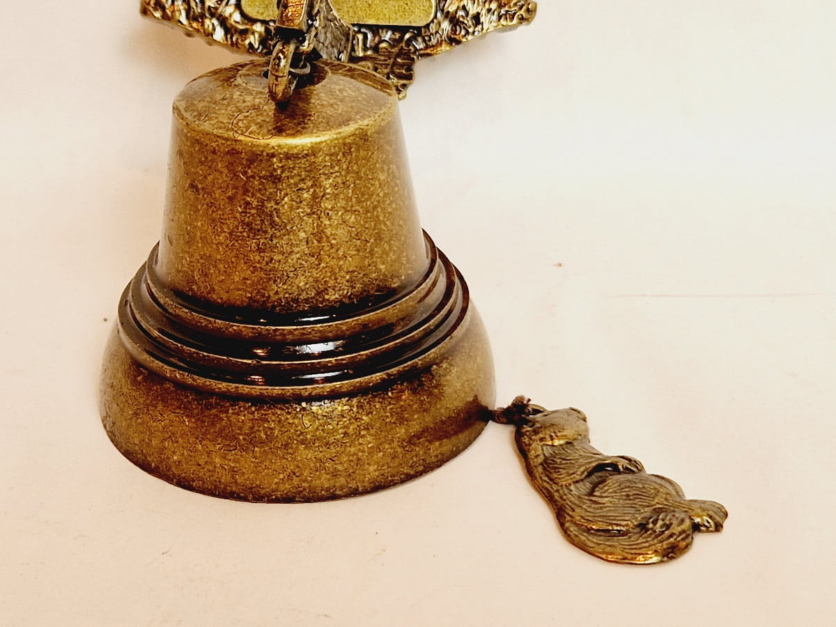 Dzwonek posiada figuralny (jelenie) bogato zdobiony wieszak - gotowy jest do zamocowania na ścianie...