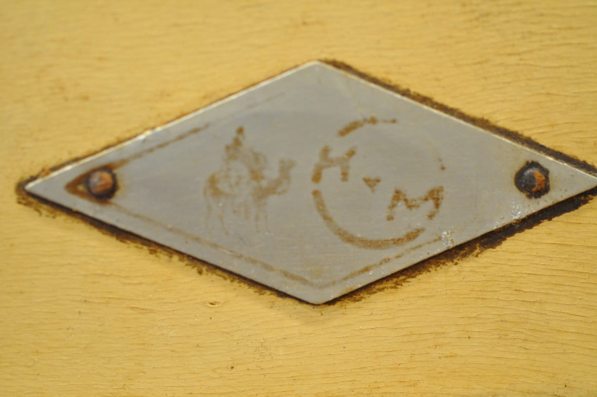 Tabliczka wytwórcza na froncie młynka z czytelną sygnaturą: