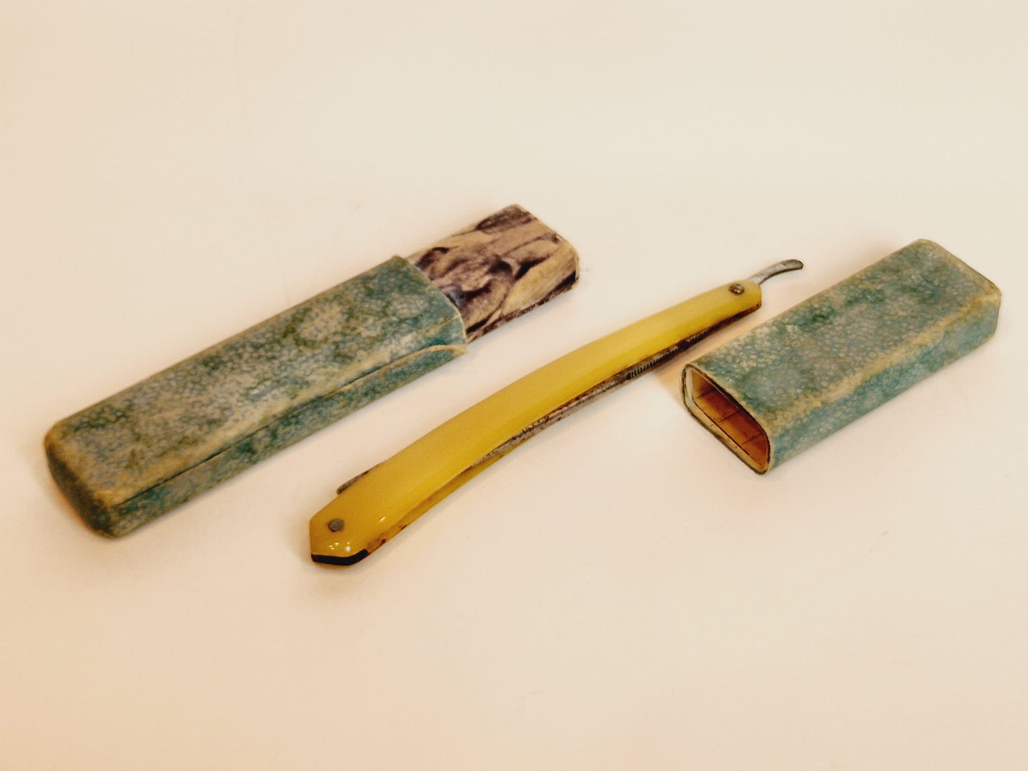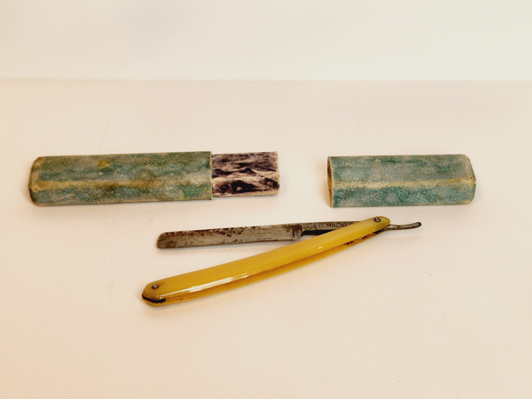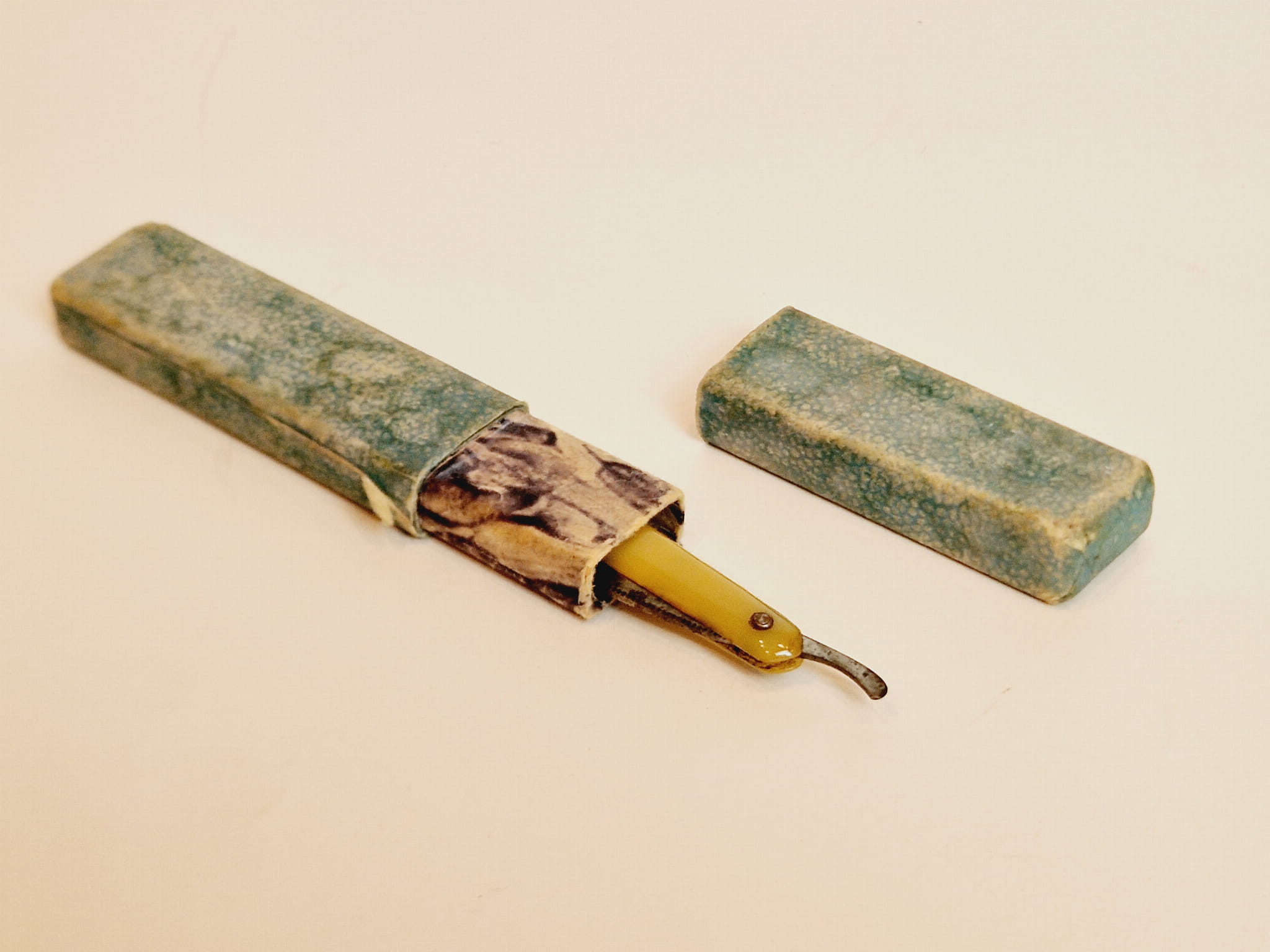 ZABYTKOWA (l. 20 / 30-te XX w) BRZYTWA W ETUI (etui niesygnowane)