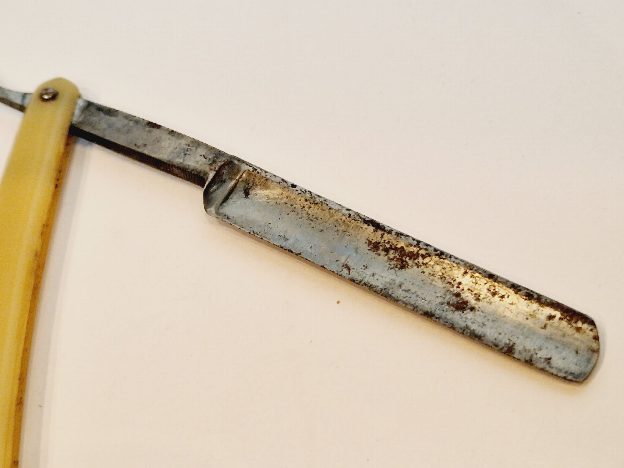 Ostrze brzytwy z rdzawum nalotem (do wypolerowania).