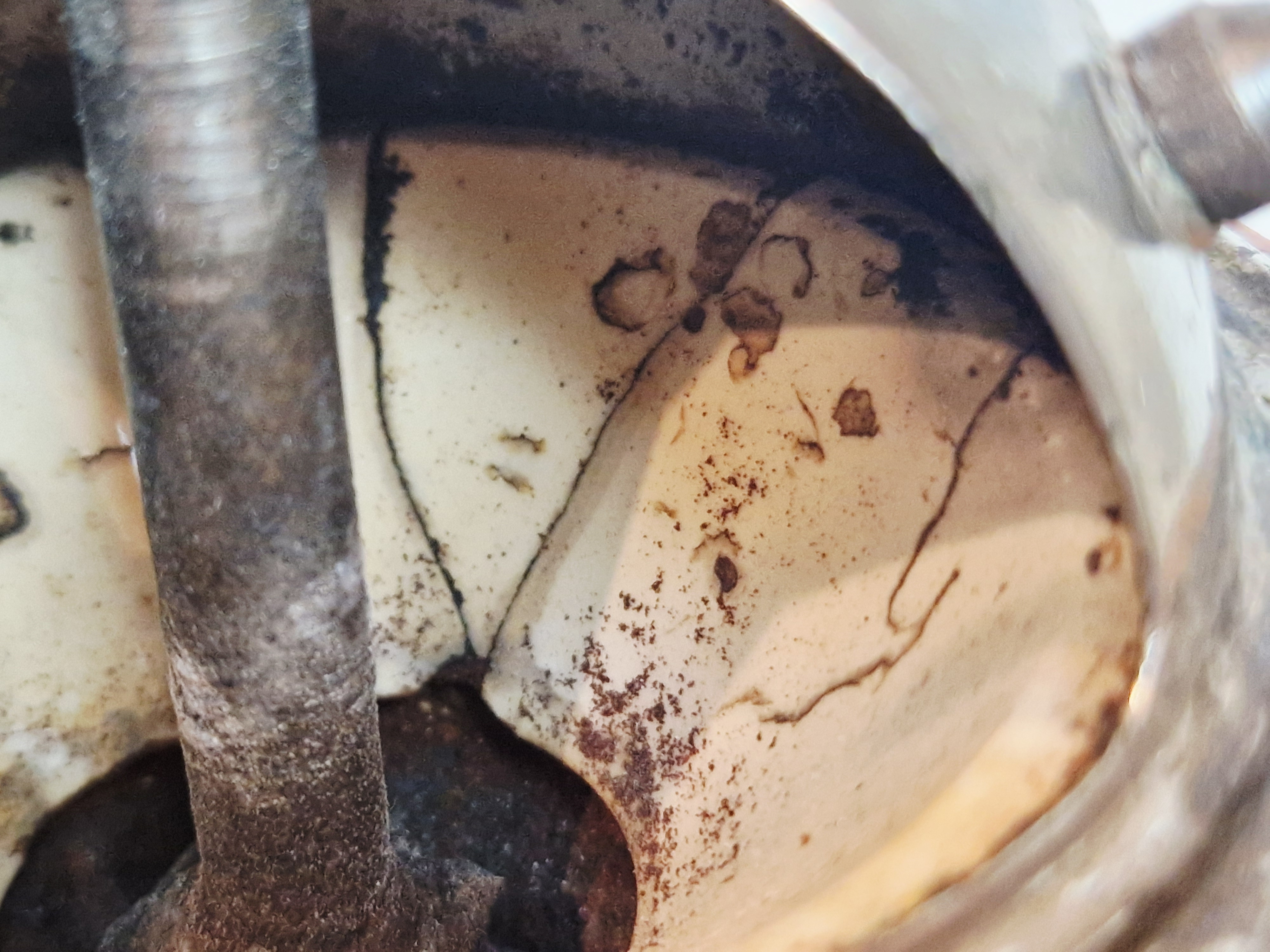 Umiarkowany, rdzawy nalot na powłoce maskownicy komory mielenia - do wyczyszczenia / wypolerowania.