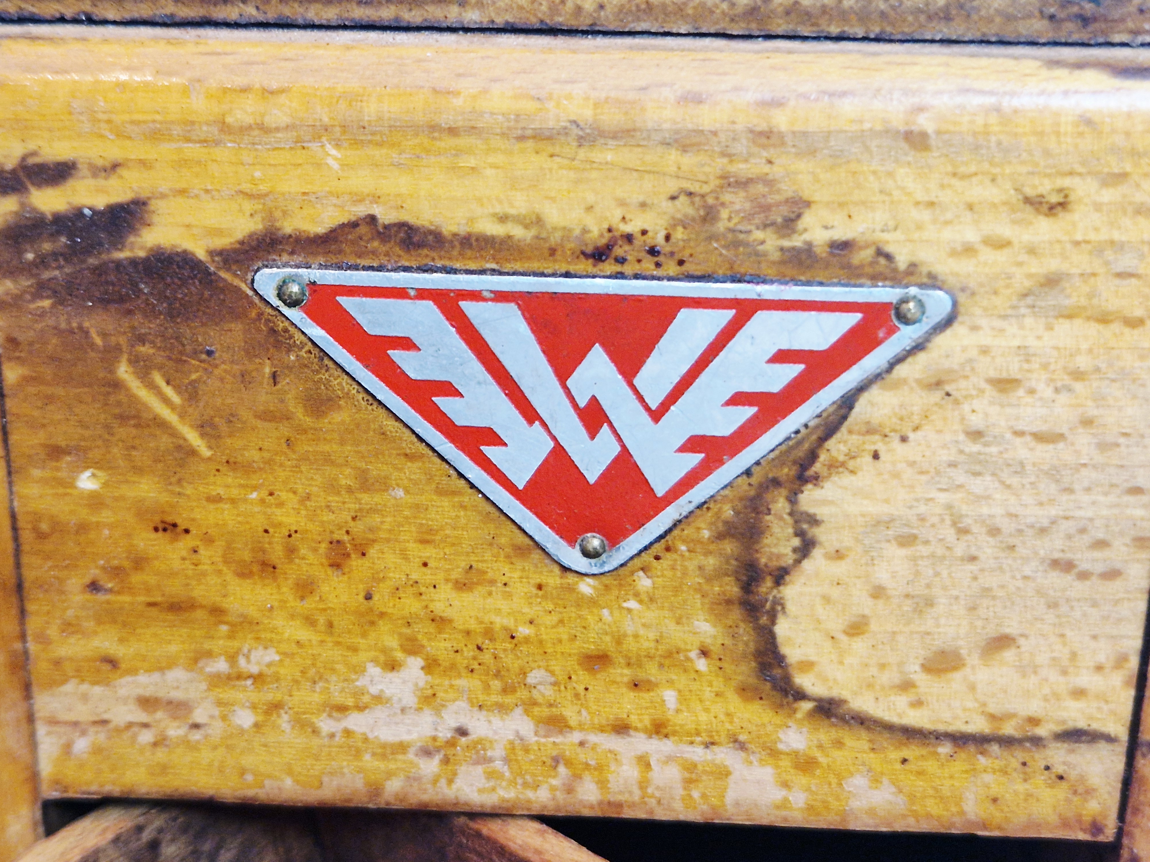 Pierwotny, wytwórczy lakier na skrzynce bez istotnych przetarć - z intensywnym nalotem (brud) - do wyczyszczenia.