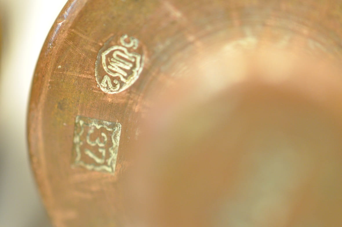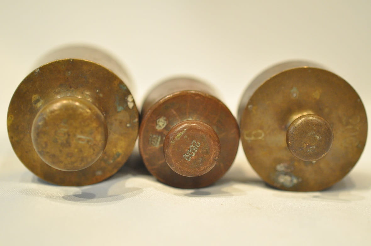 Kołnierze i główki odważników sygnowane nominałami bądź też znakami legalizacji.