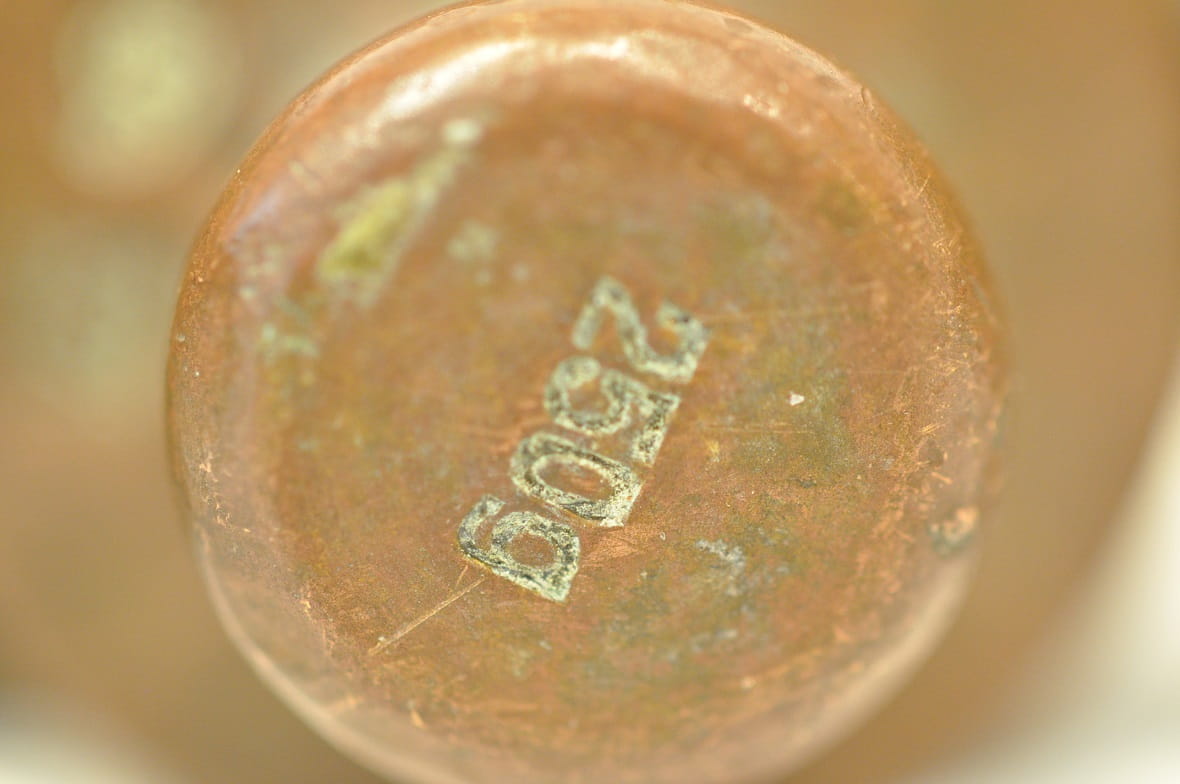 Sygnatura nominału na główce odważnika 250 g:
