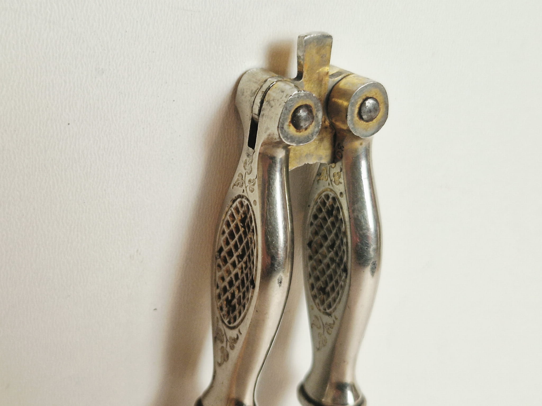 ZABYTKOWY (l. 20 / 30-te XX w) MASYWNY (157 g) POSREBRZANY ZGNIATACZ - DZIADEK DO ORZECHÓW