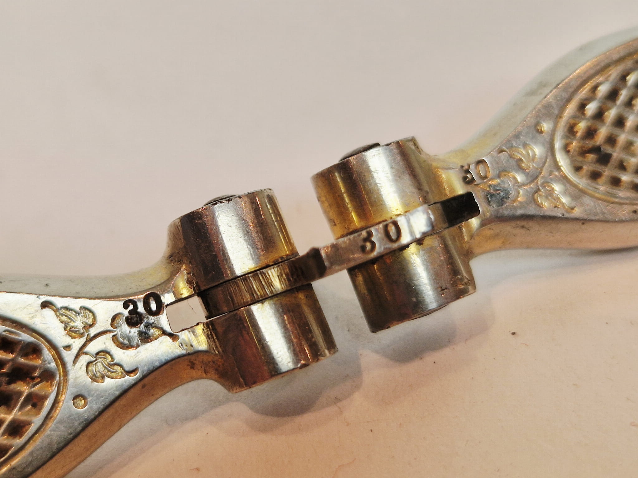 Przegub zgniatacza z trzema sygnaturami "30" (grubość plateru w μm)...