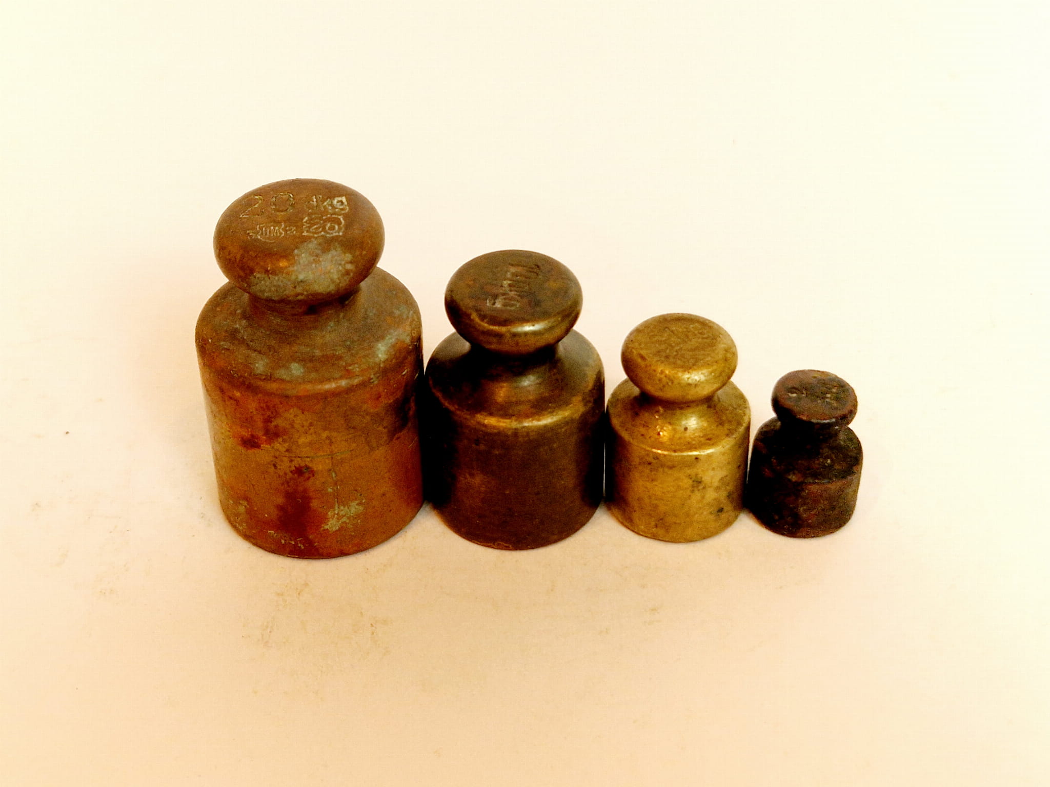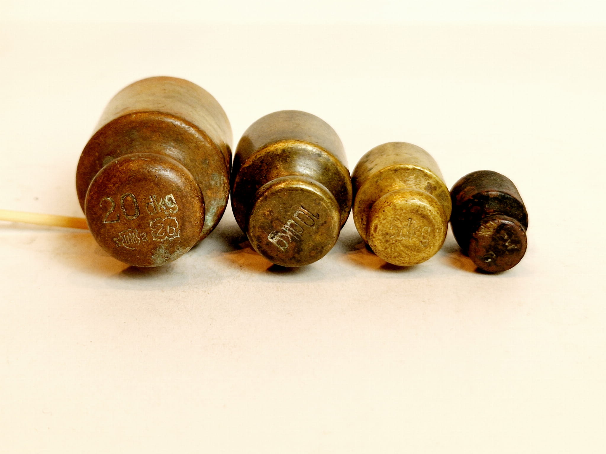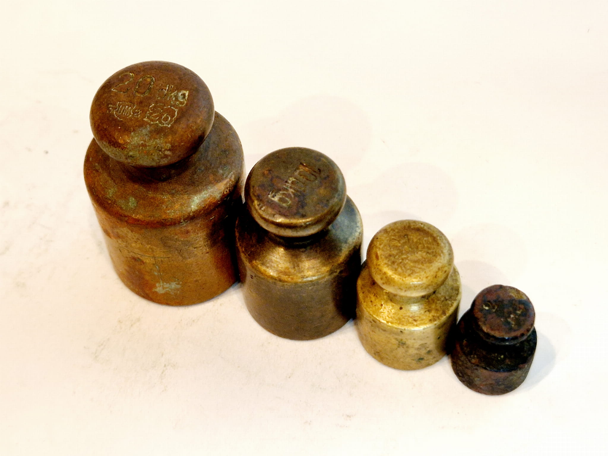 Odważniki zachowane w bardzo dobrym stanie kolekcjonerskim.