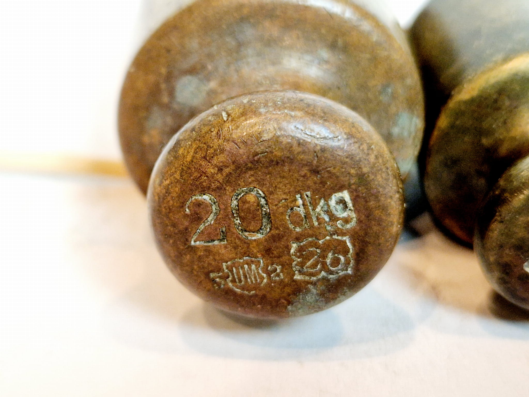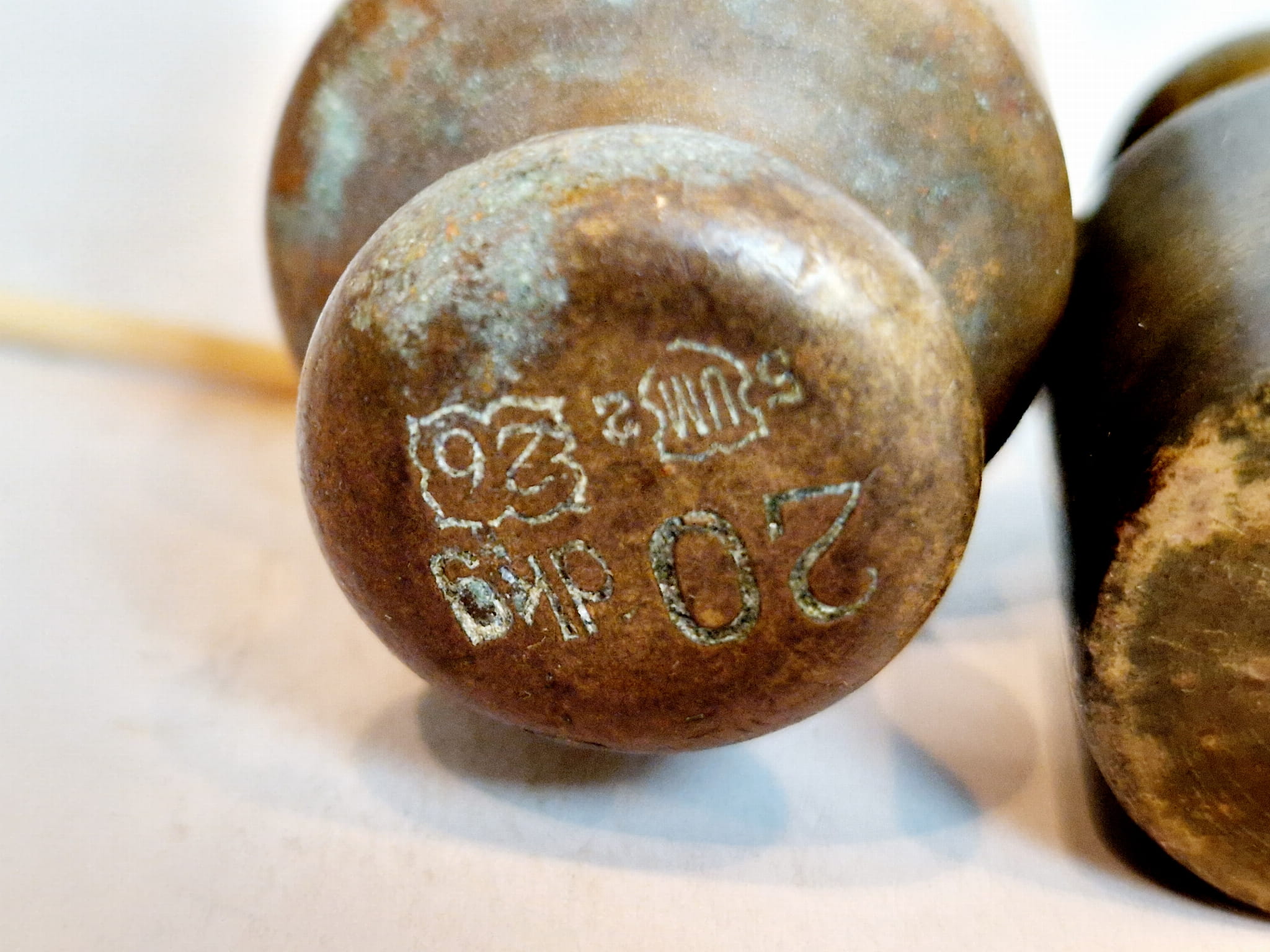 Na kołnierzu odważnika 20dkg nabite sygnatury legalizacji...