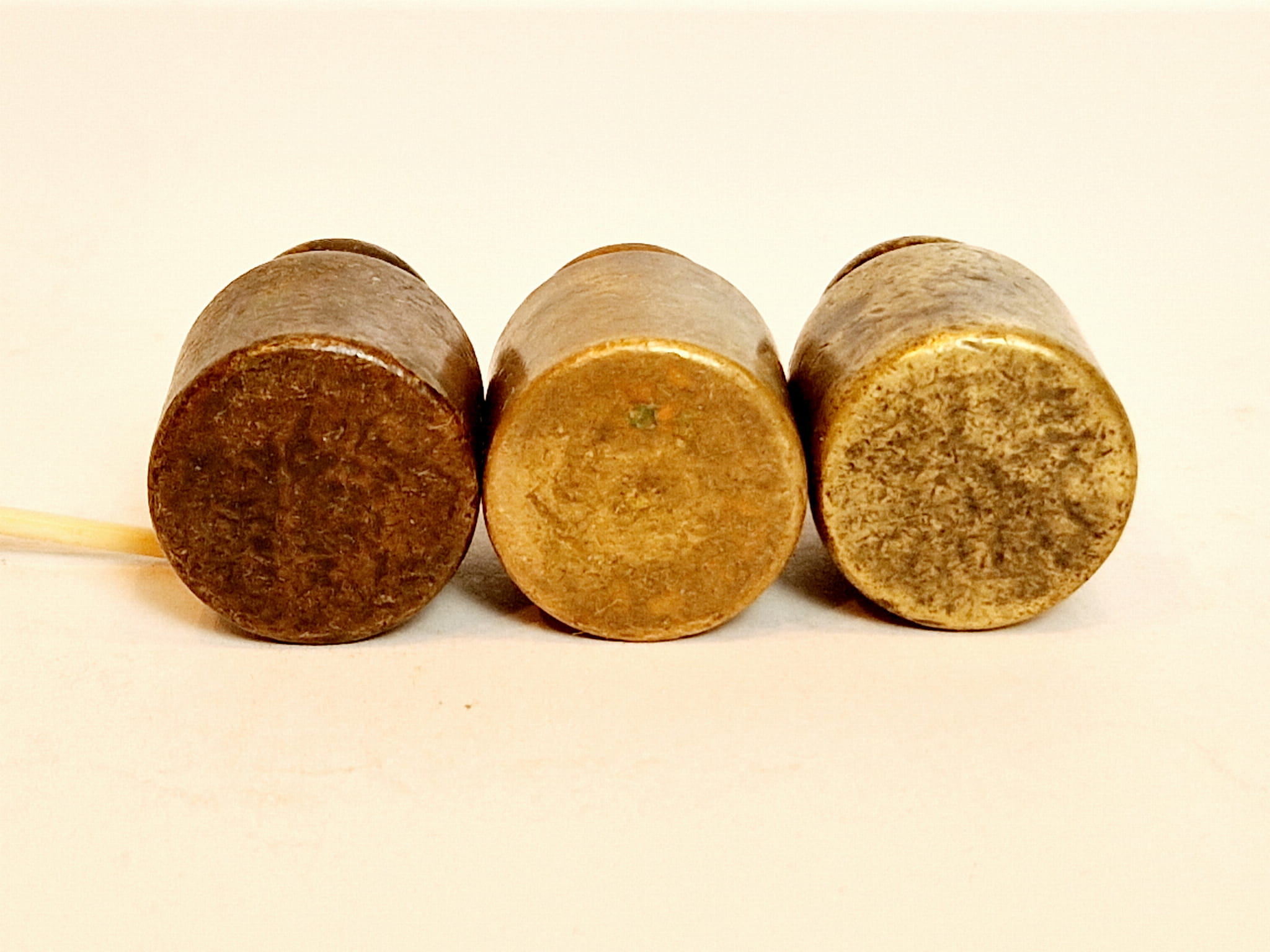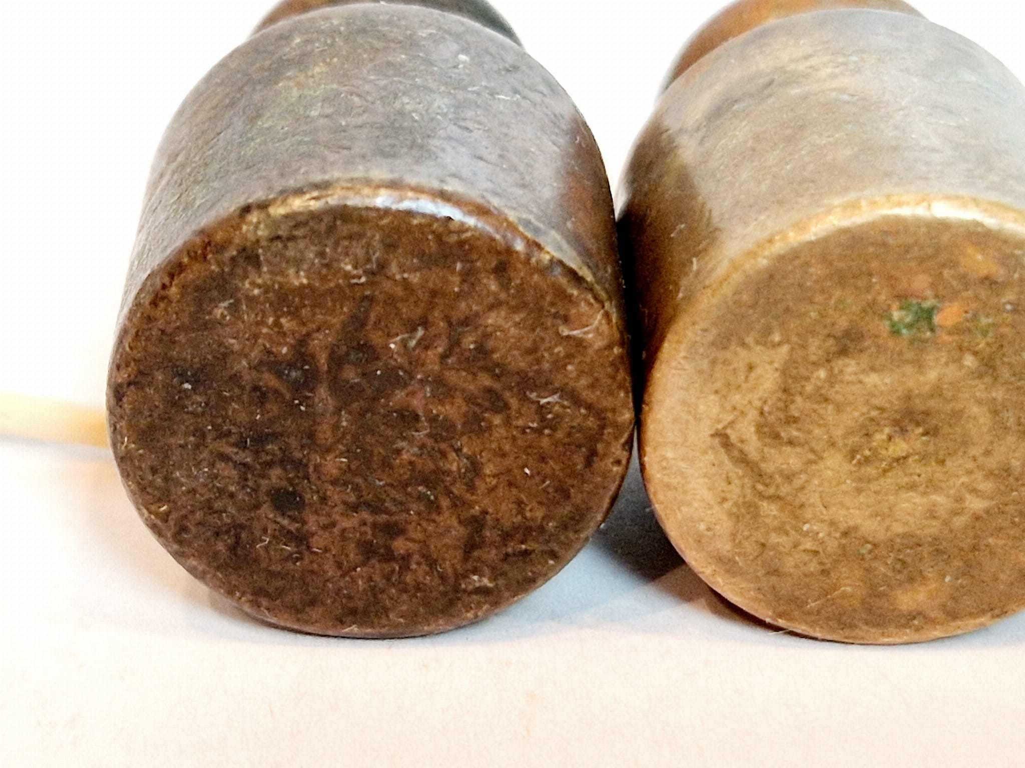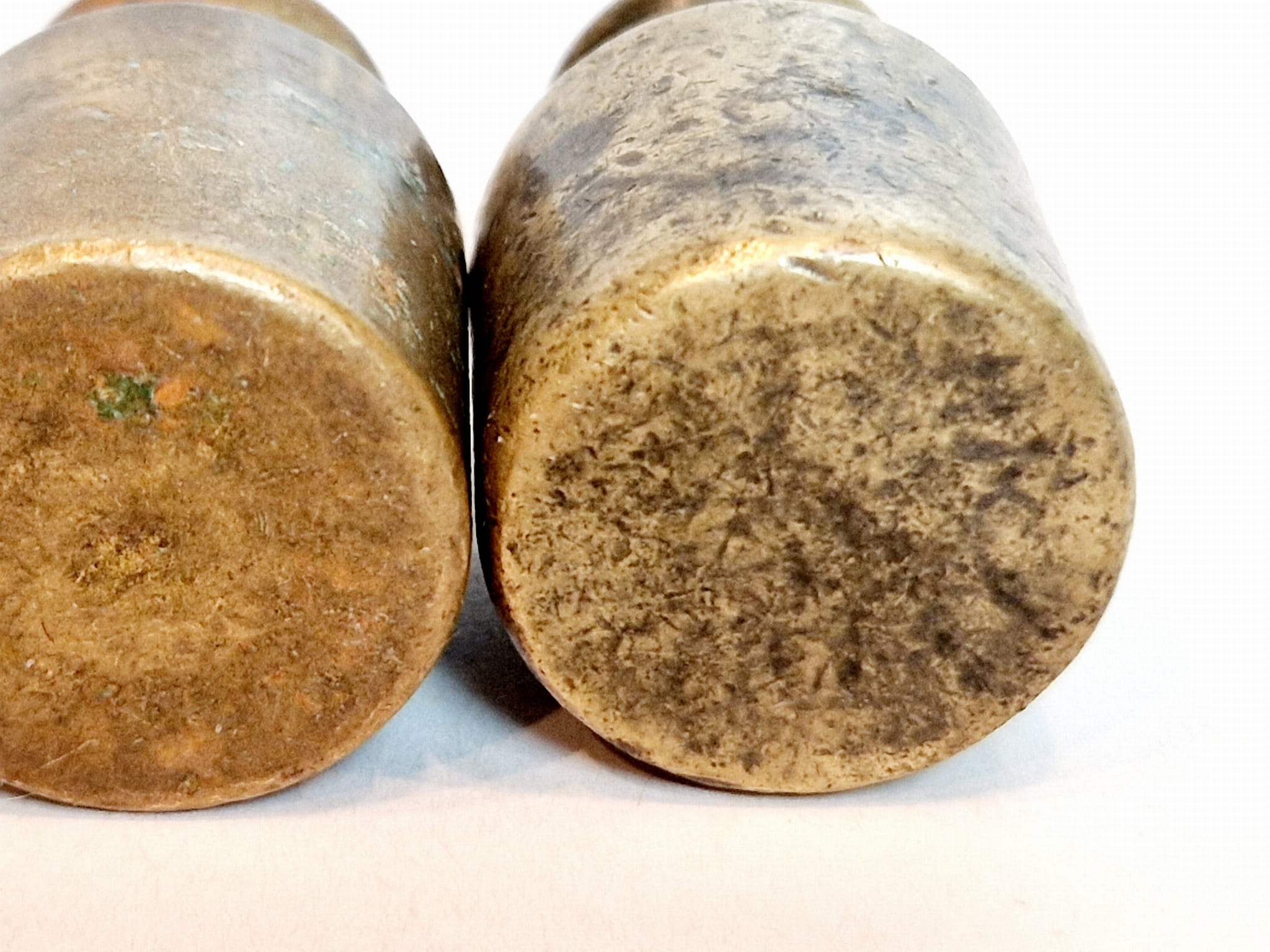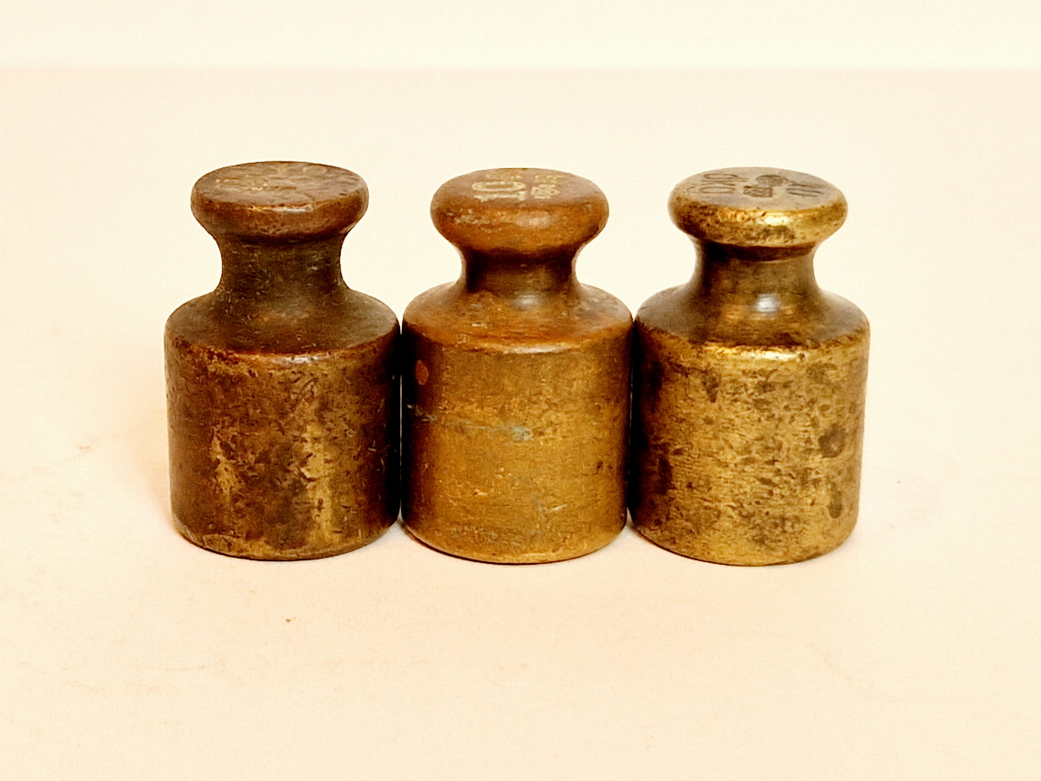 Odważniki nie były czyszczone - pokryte są oryginalną, starą, ciemną patyną.