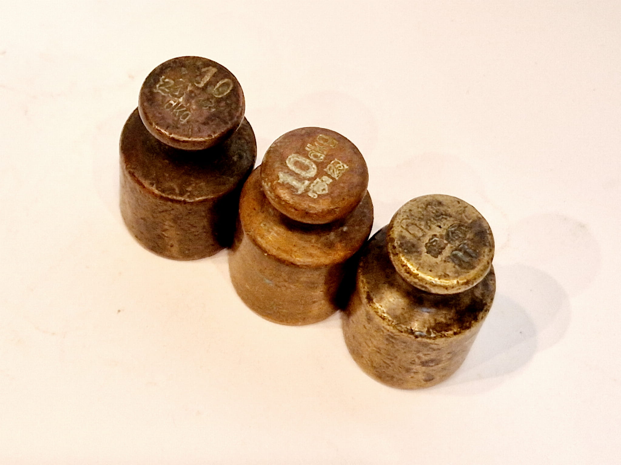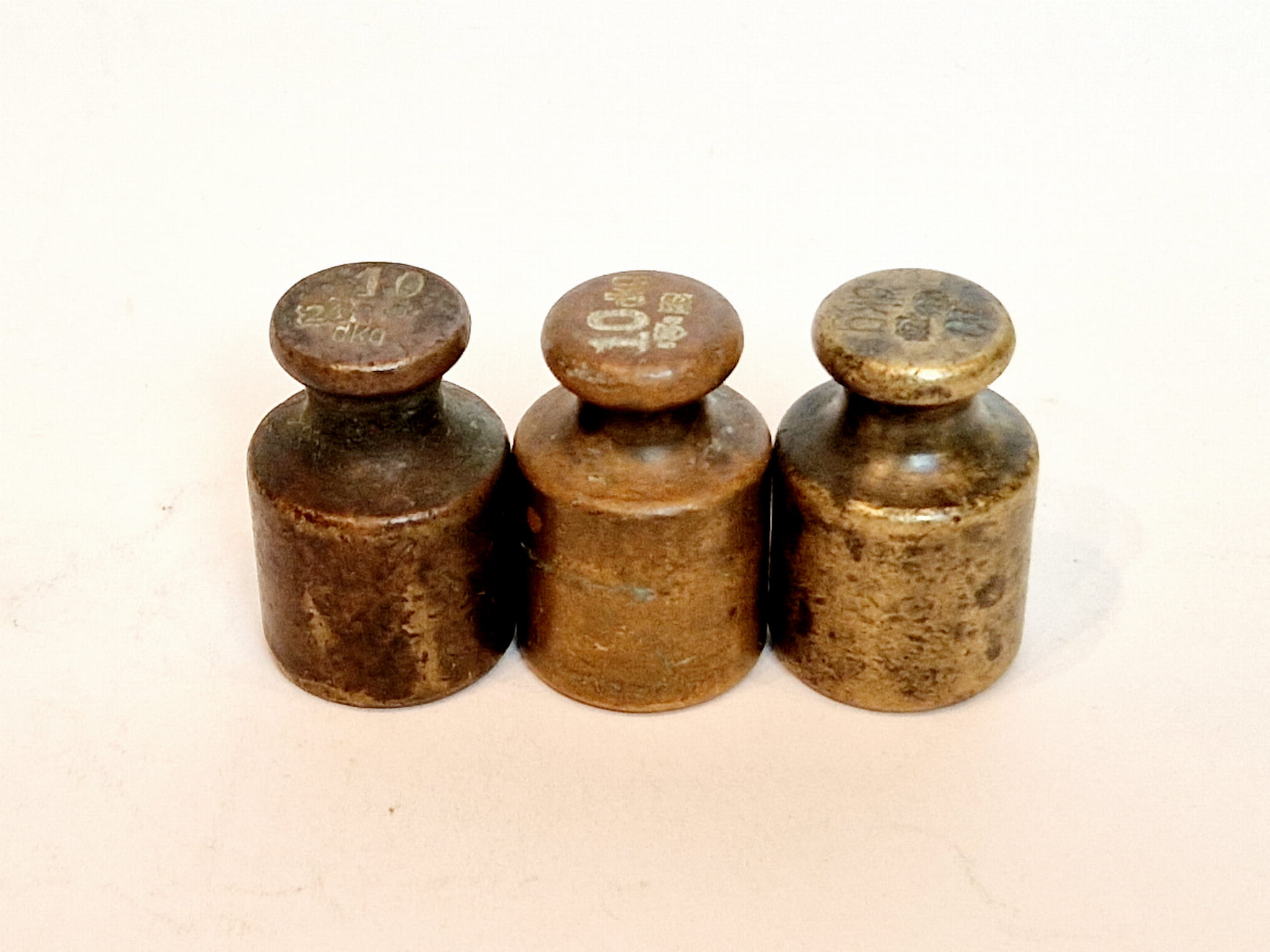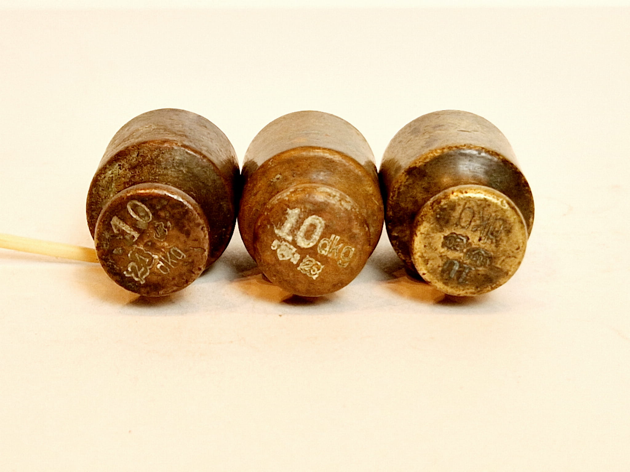 (l. 20-te XX w) 3 szt. x 10 dkg - POLSKIE METRYCZNE ODWAŻNIKI HANDLOWE