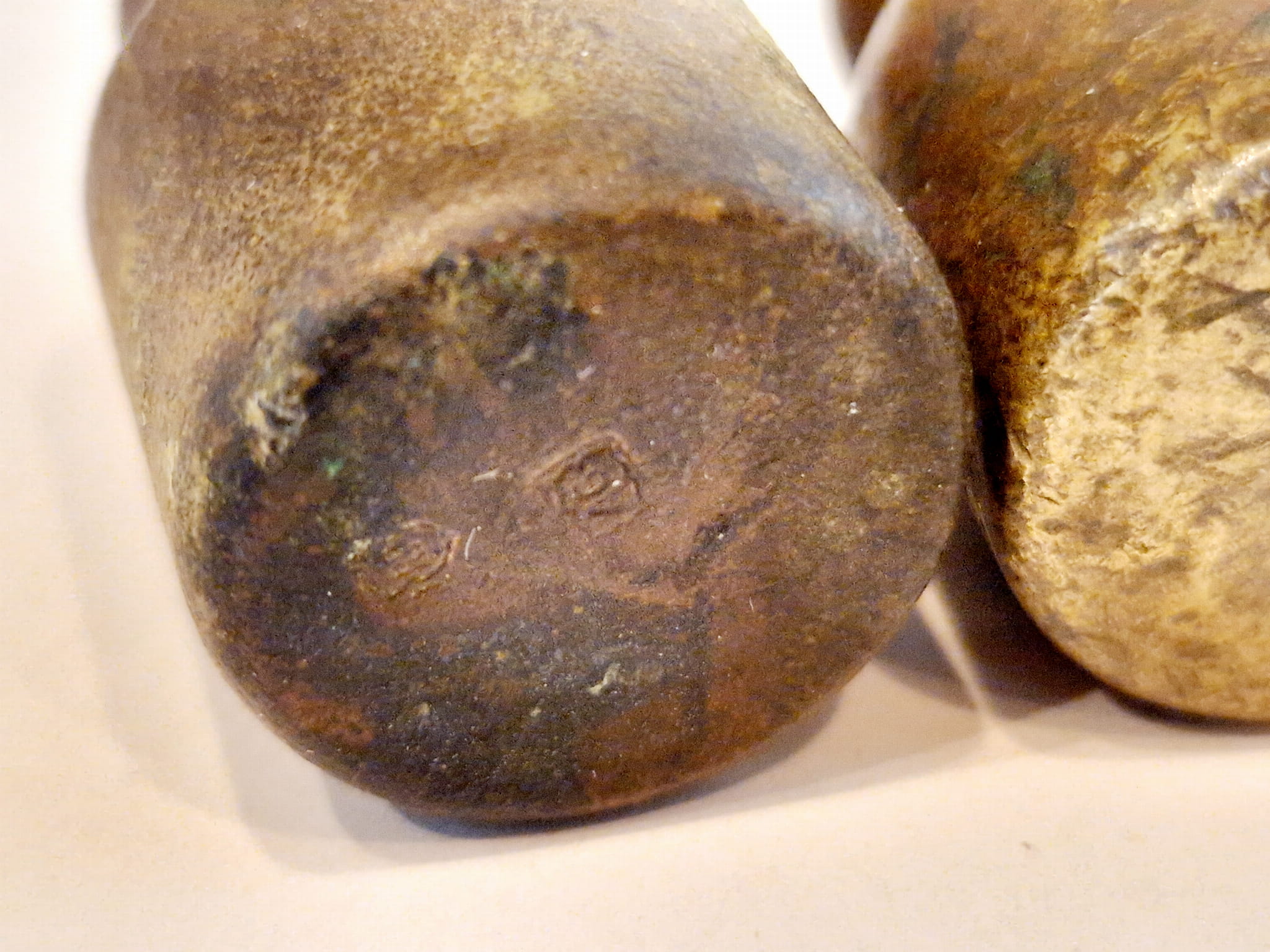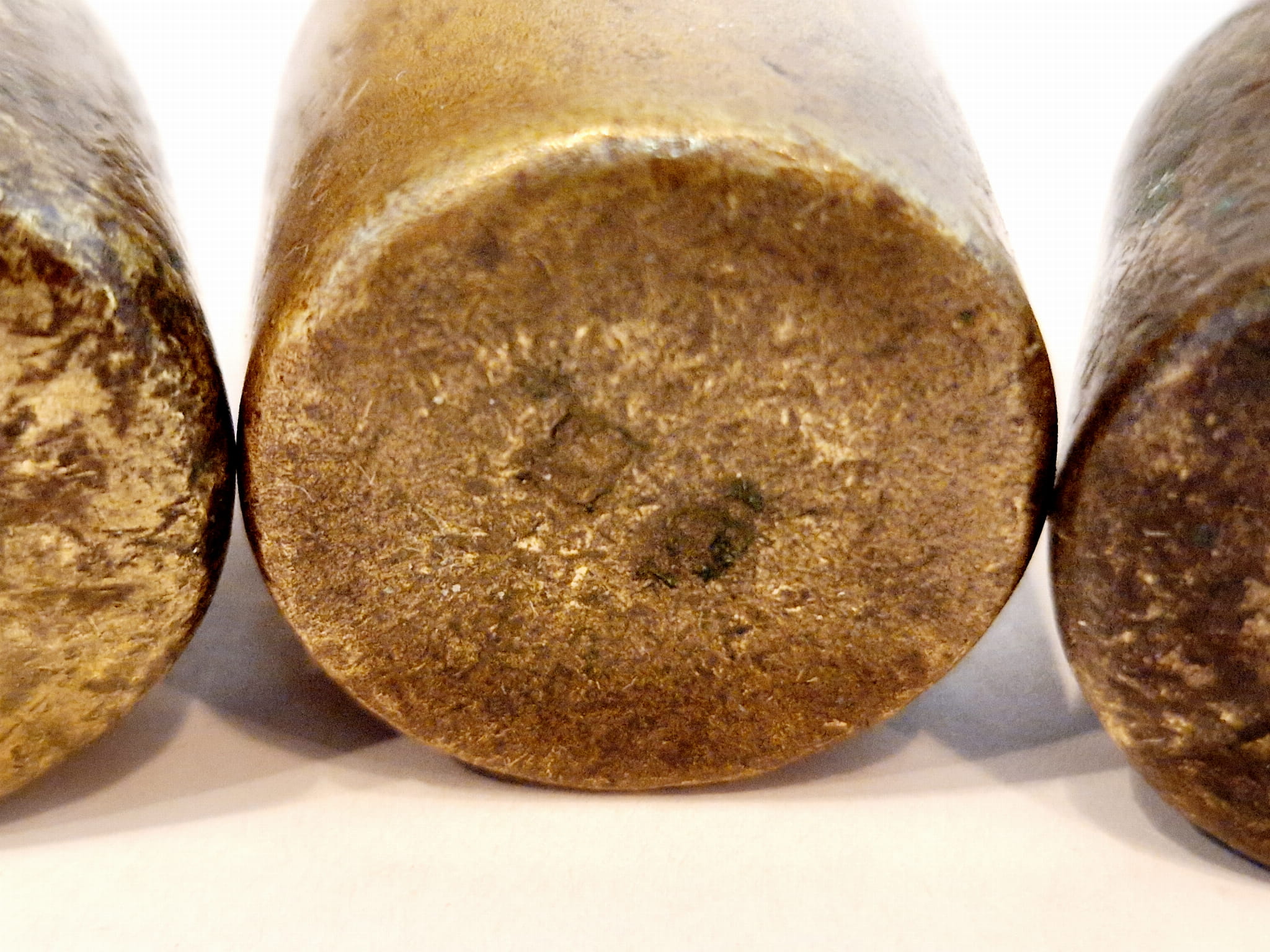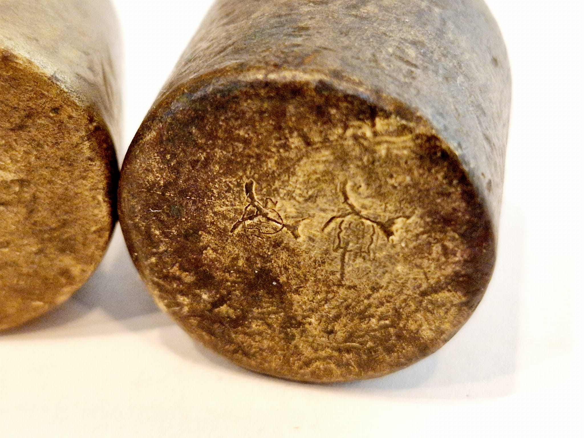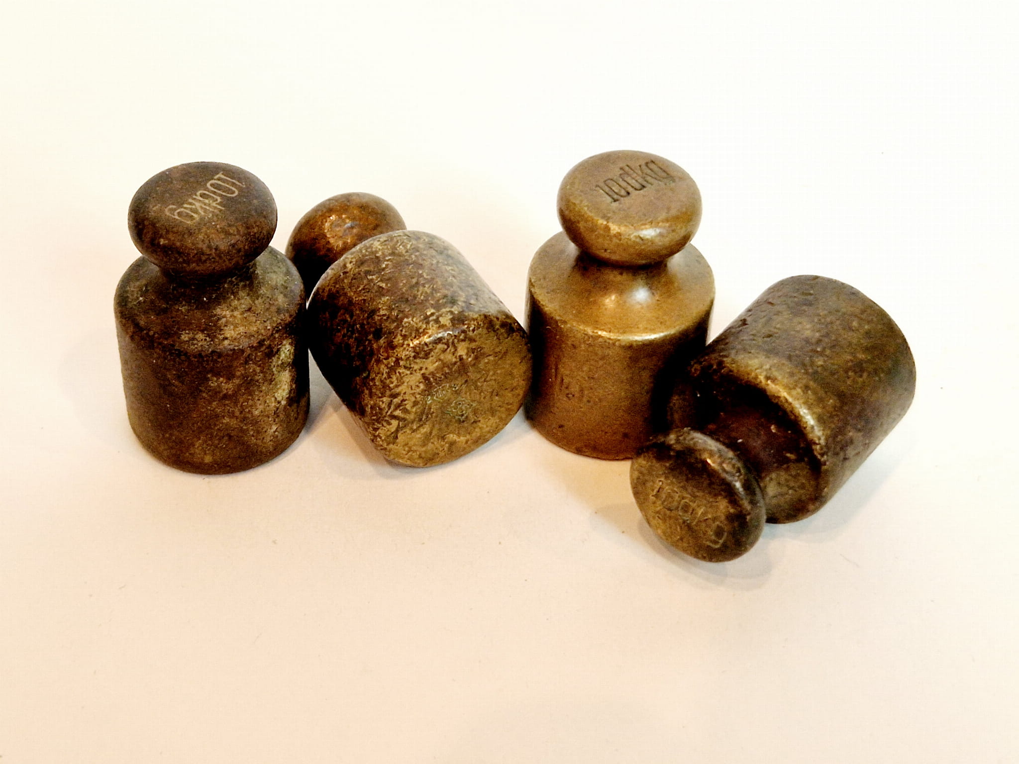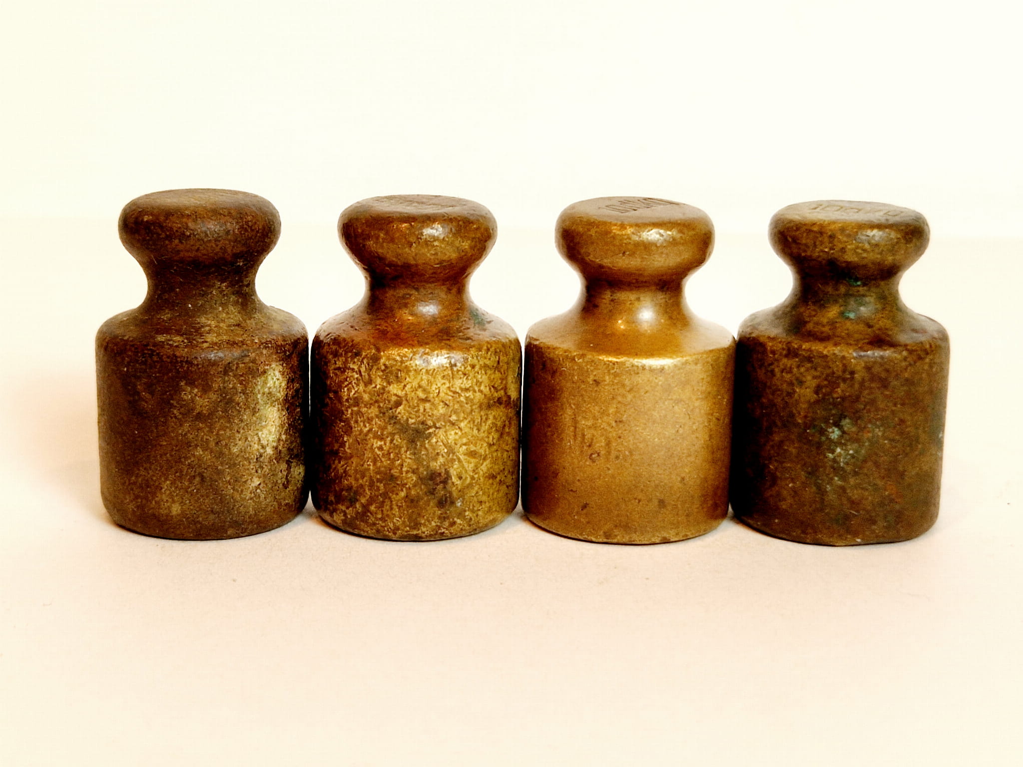 Odważniki nie były czyszczone - pokryte są oryginalną, starą, ciemną patyną.