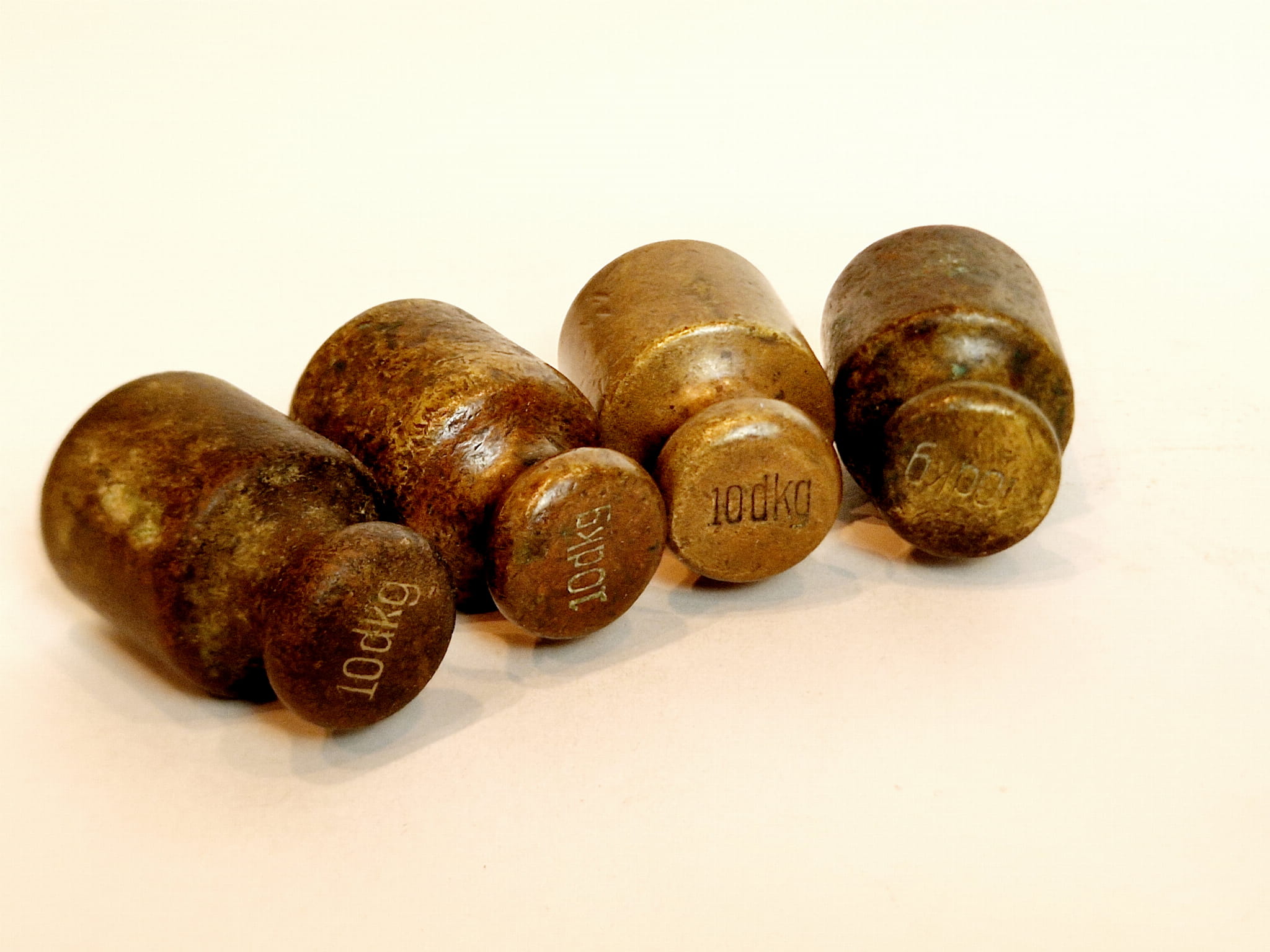 Odważniki zachowane w bardzo dobrym stanie kolekcjonerskim.
