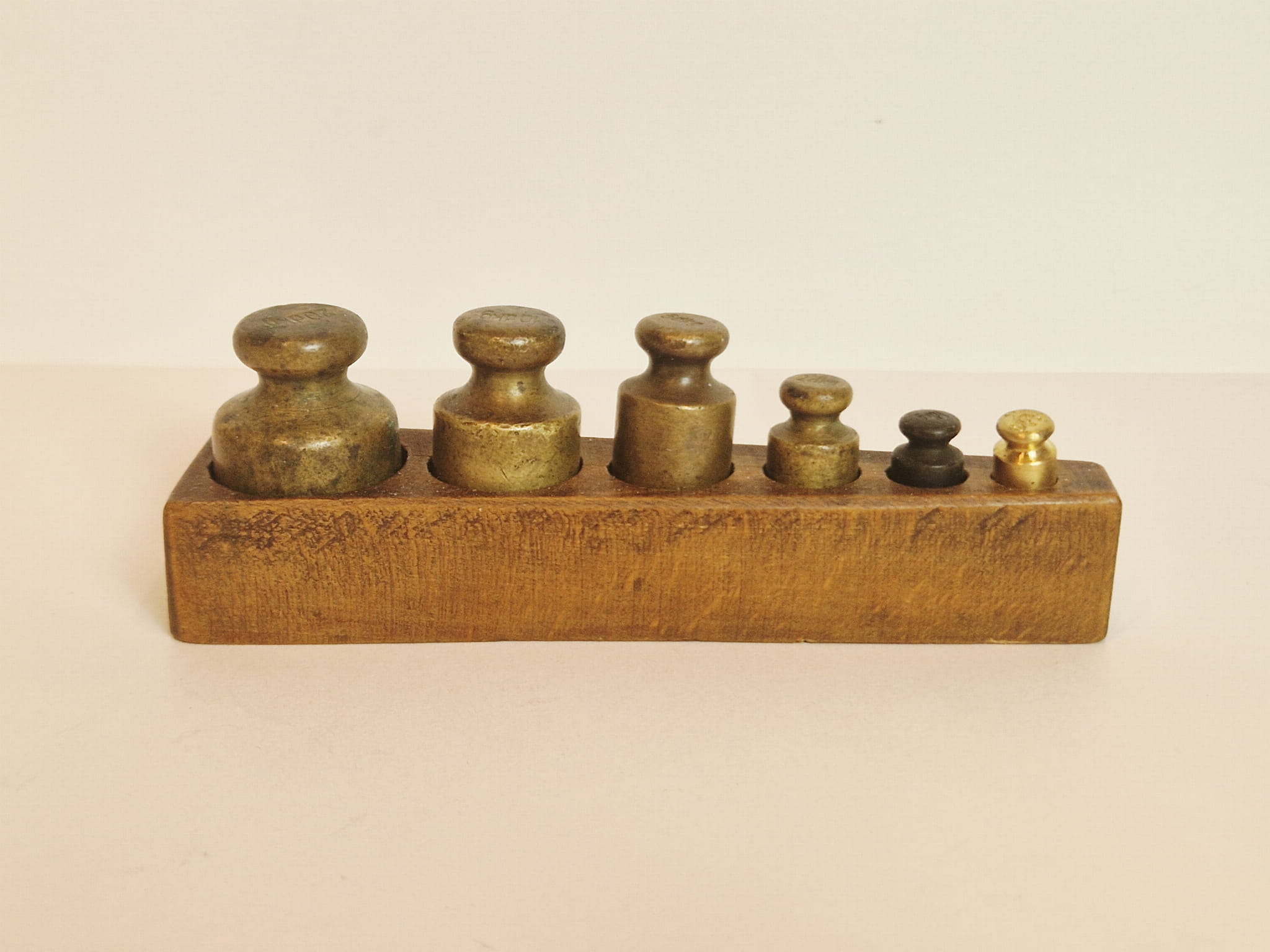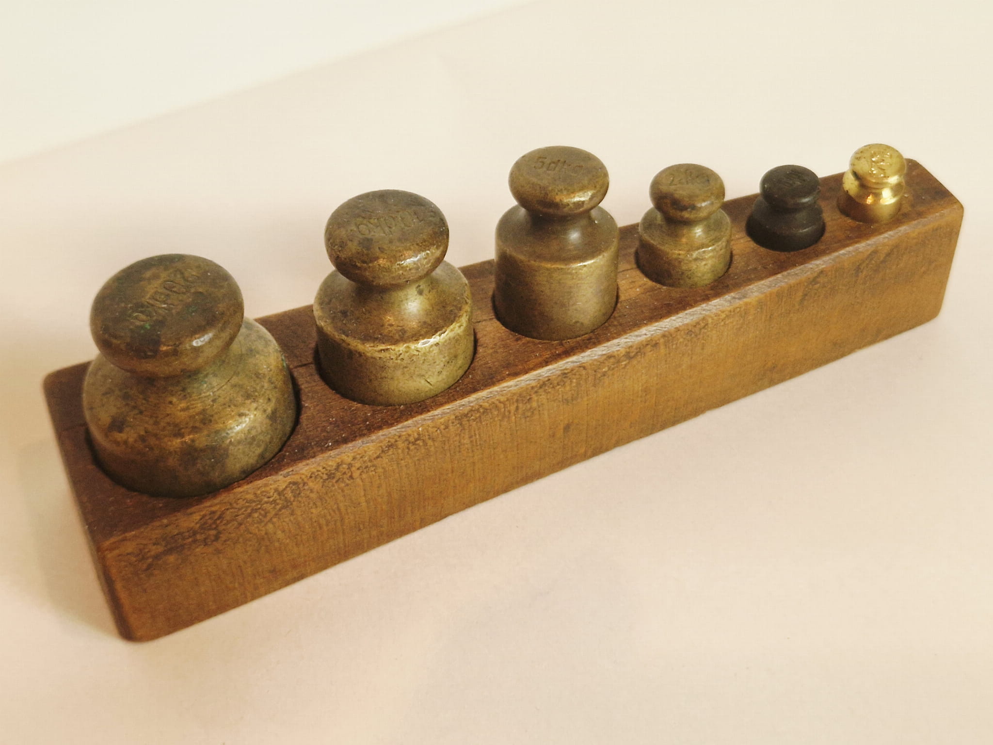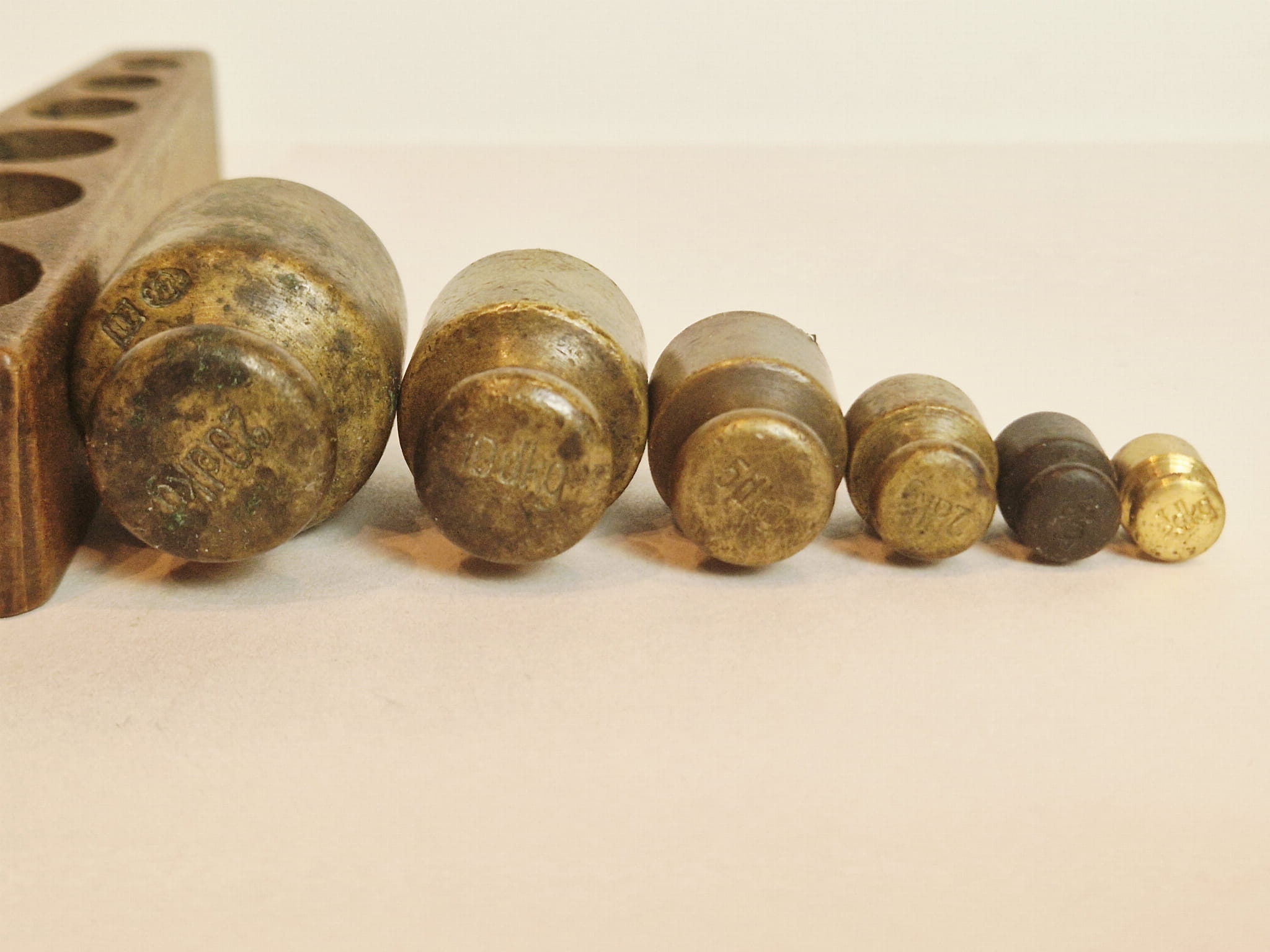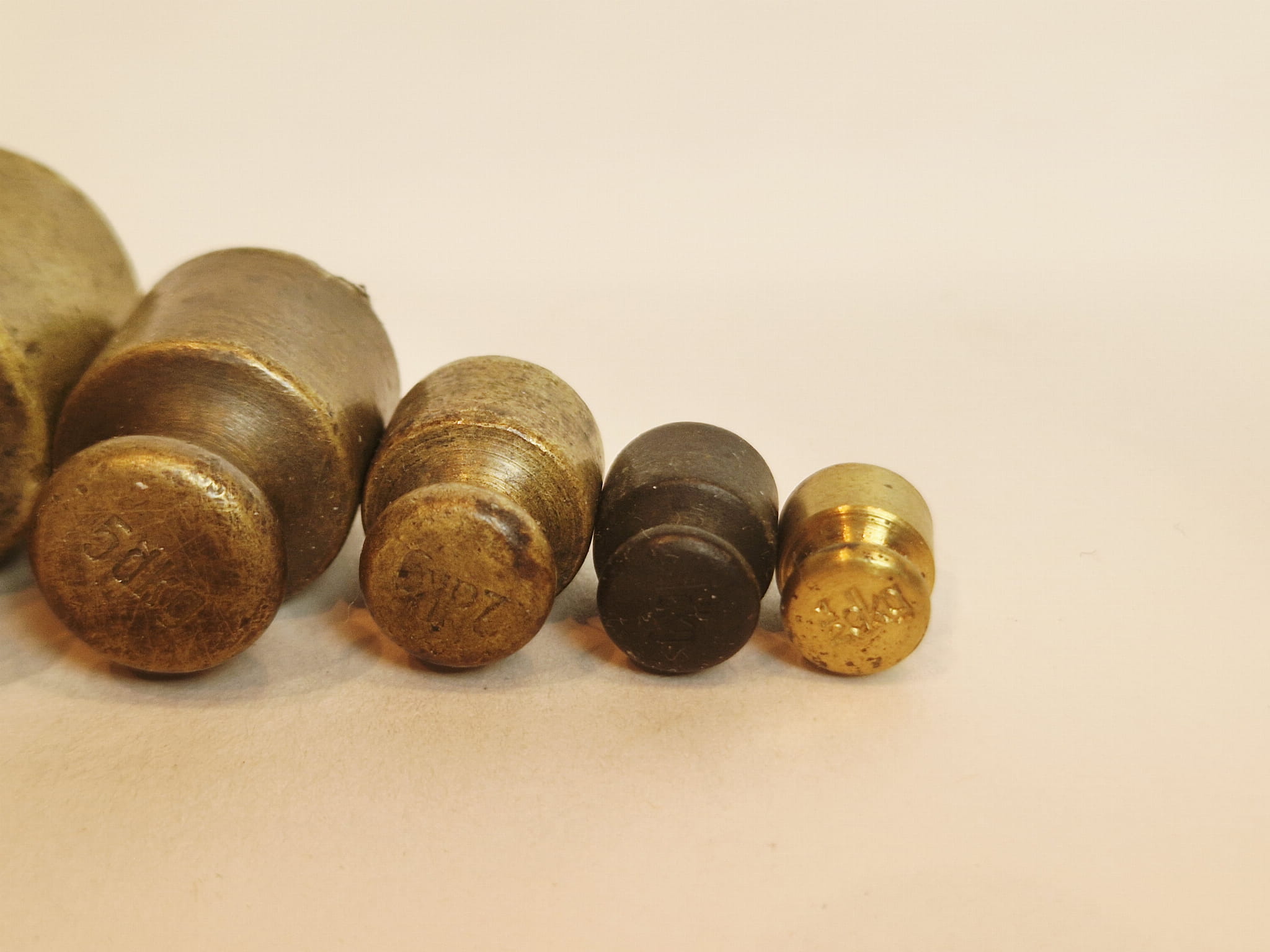 Odważniki zachowane w bardzo dobrym stanie kolekcjonerskim.
