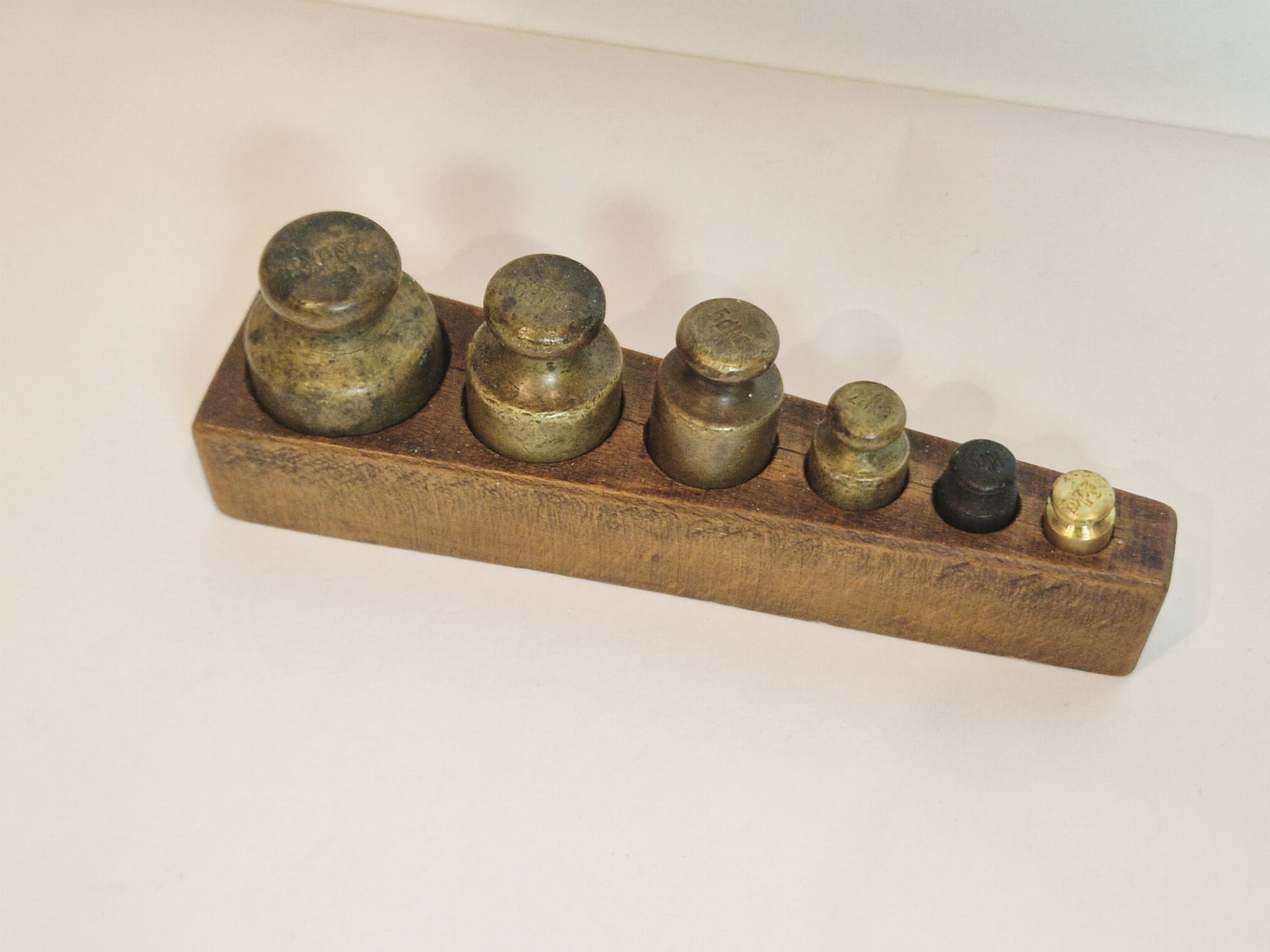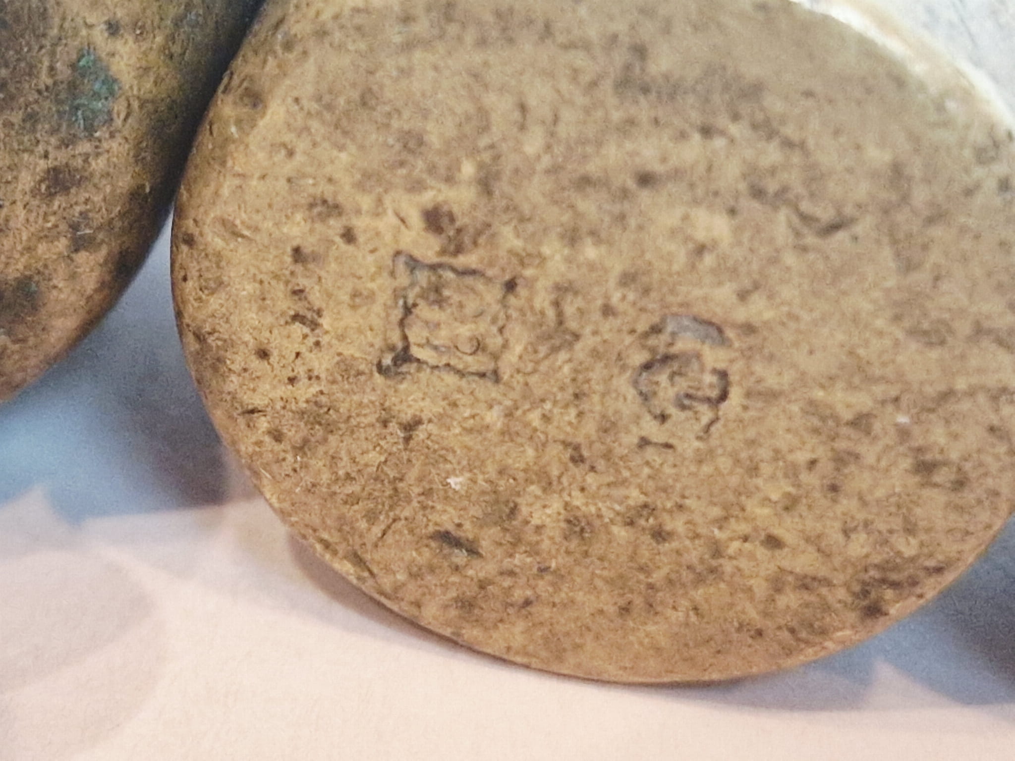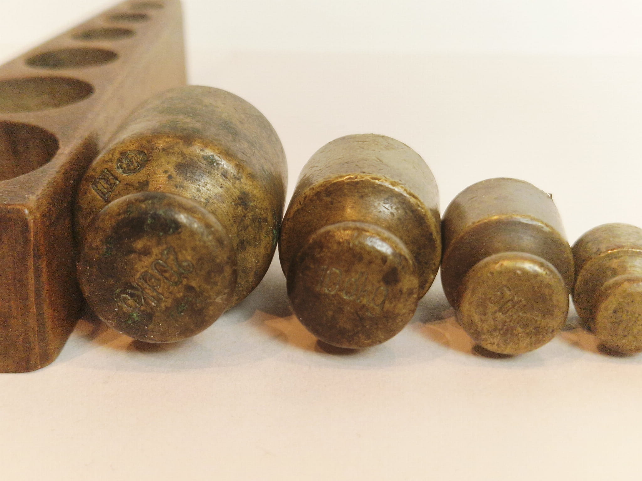 Odważniki nie były czyszczone - pokryte są oryginalną, starą, ciemną patyną.