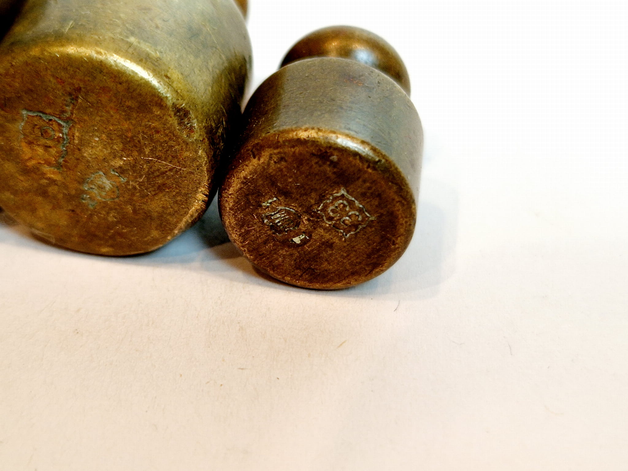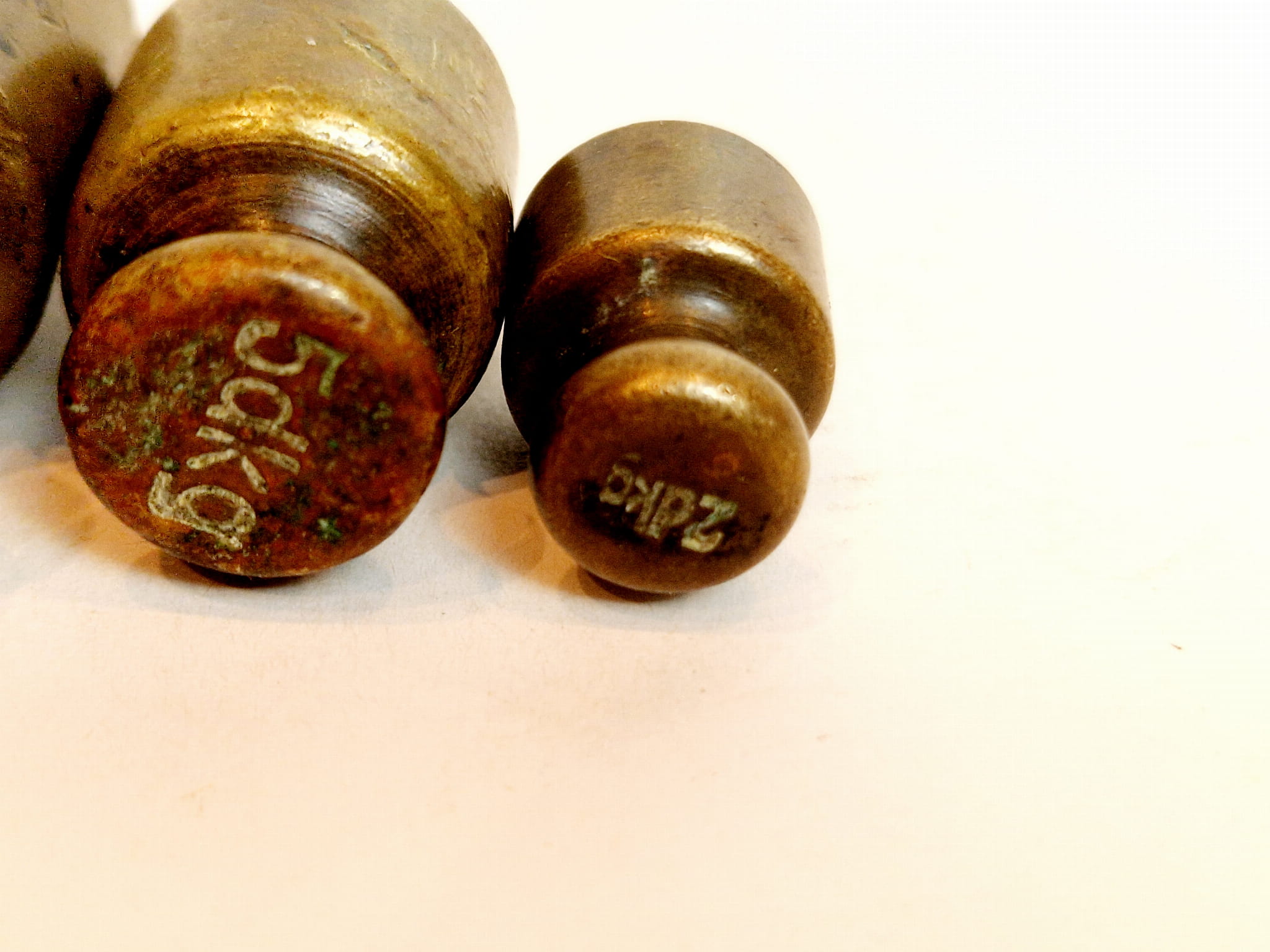 Główki odważników sygnowane nominałami wagowymi: