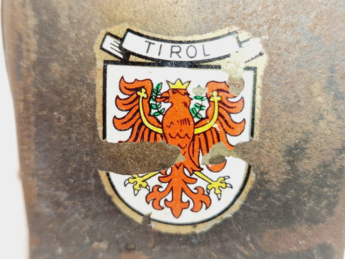 Front płaszcza ozdobiony wielobarwnym emblematem - kalkomania:
