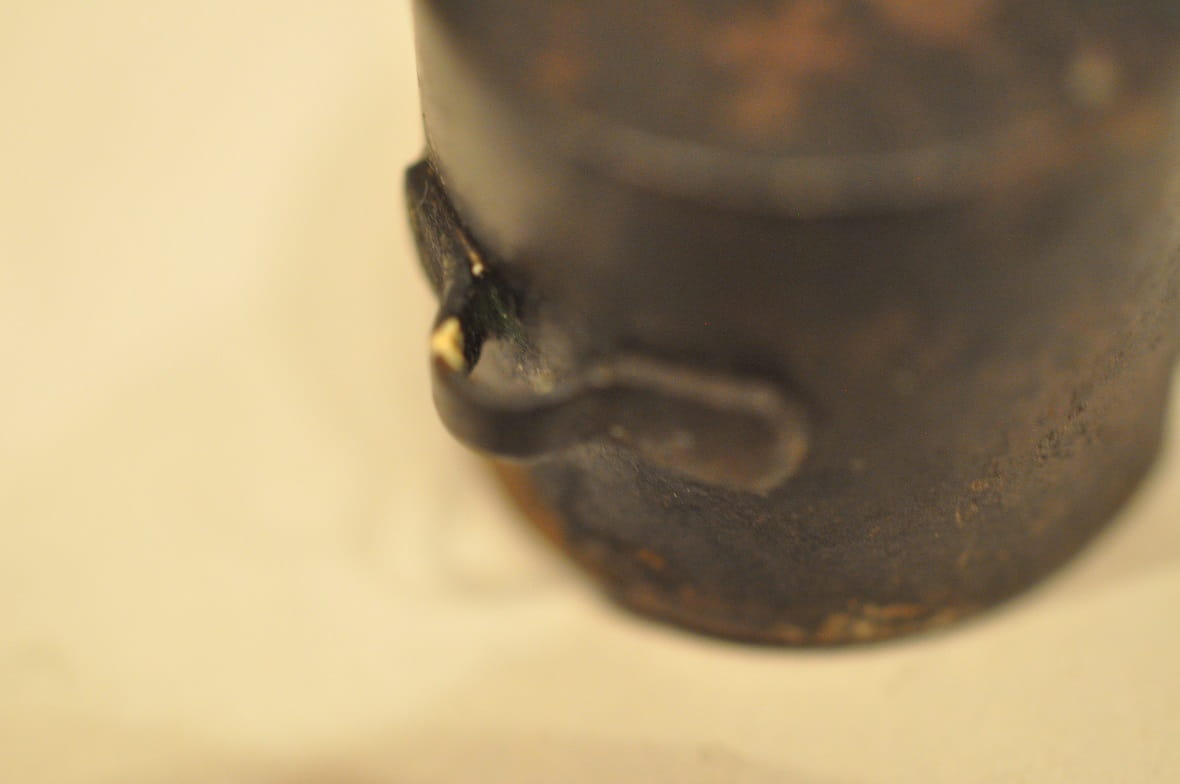 Gwizdek pokryty jest starą patyną z miejscowymi śniedziowymi plamkami.