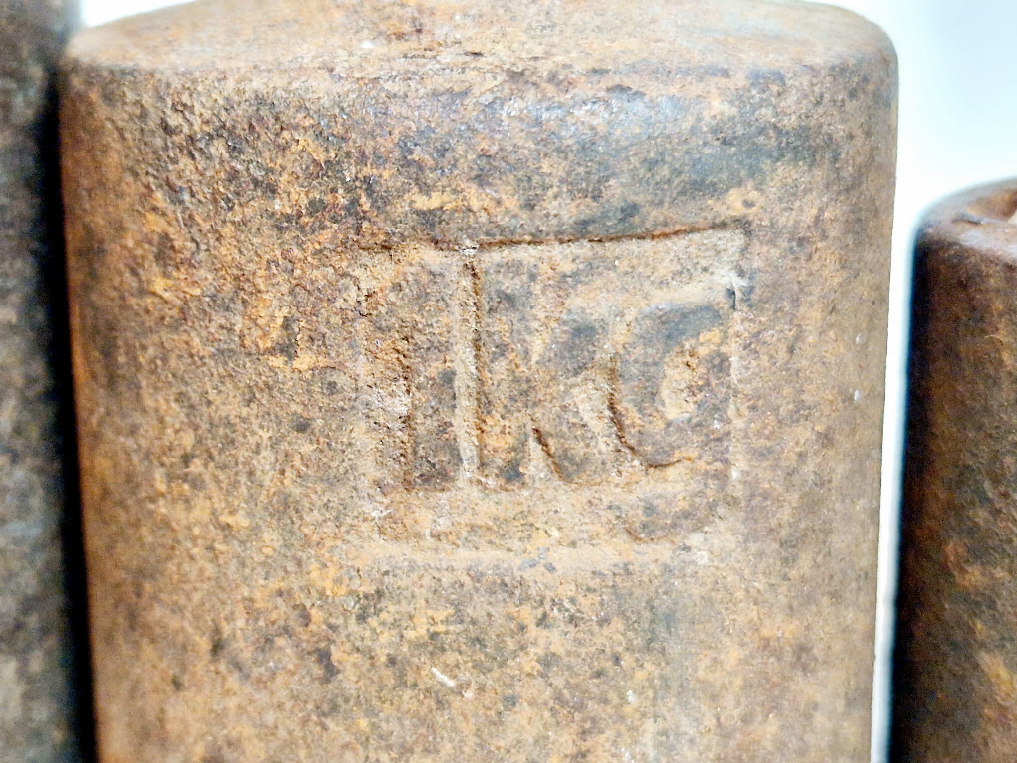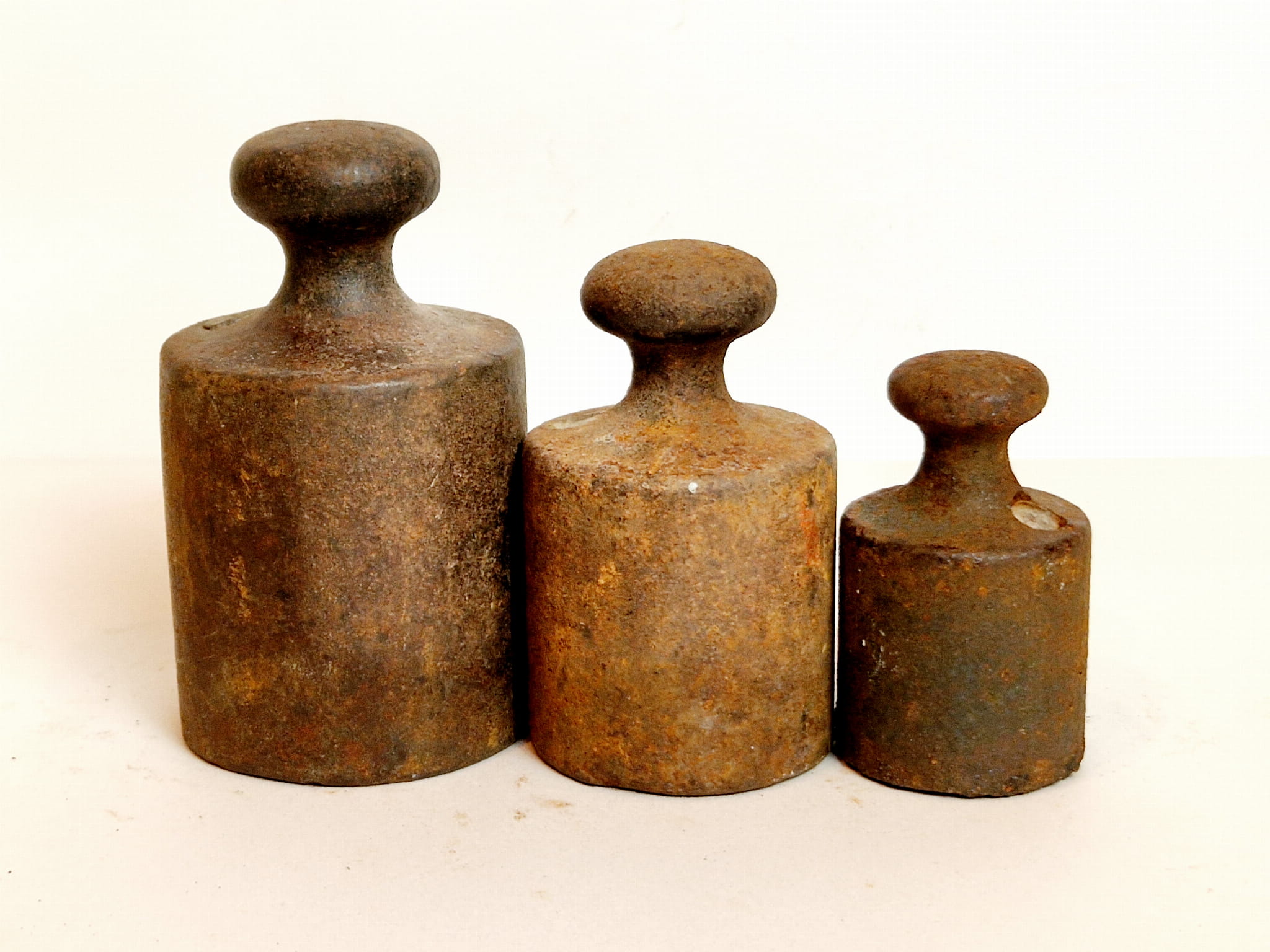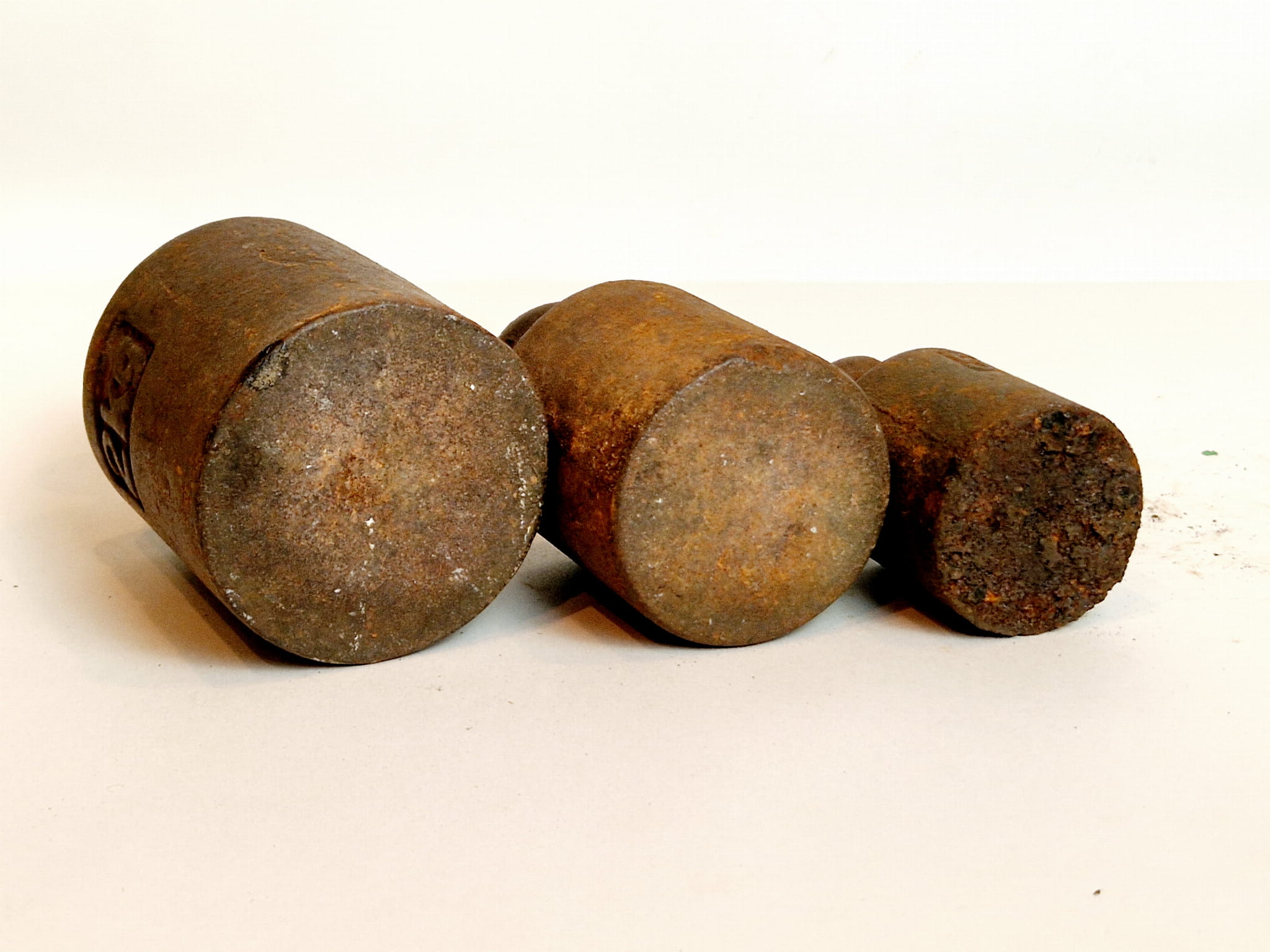Powierzchnie odważników pokryte są delikatnym rdzawym nalotem - bez głębszych wżerów korozji.