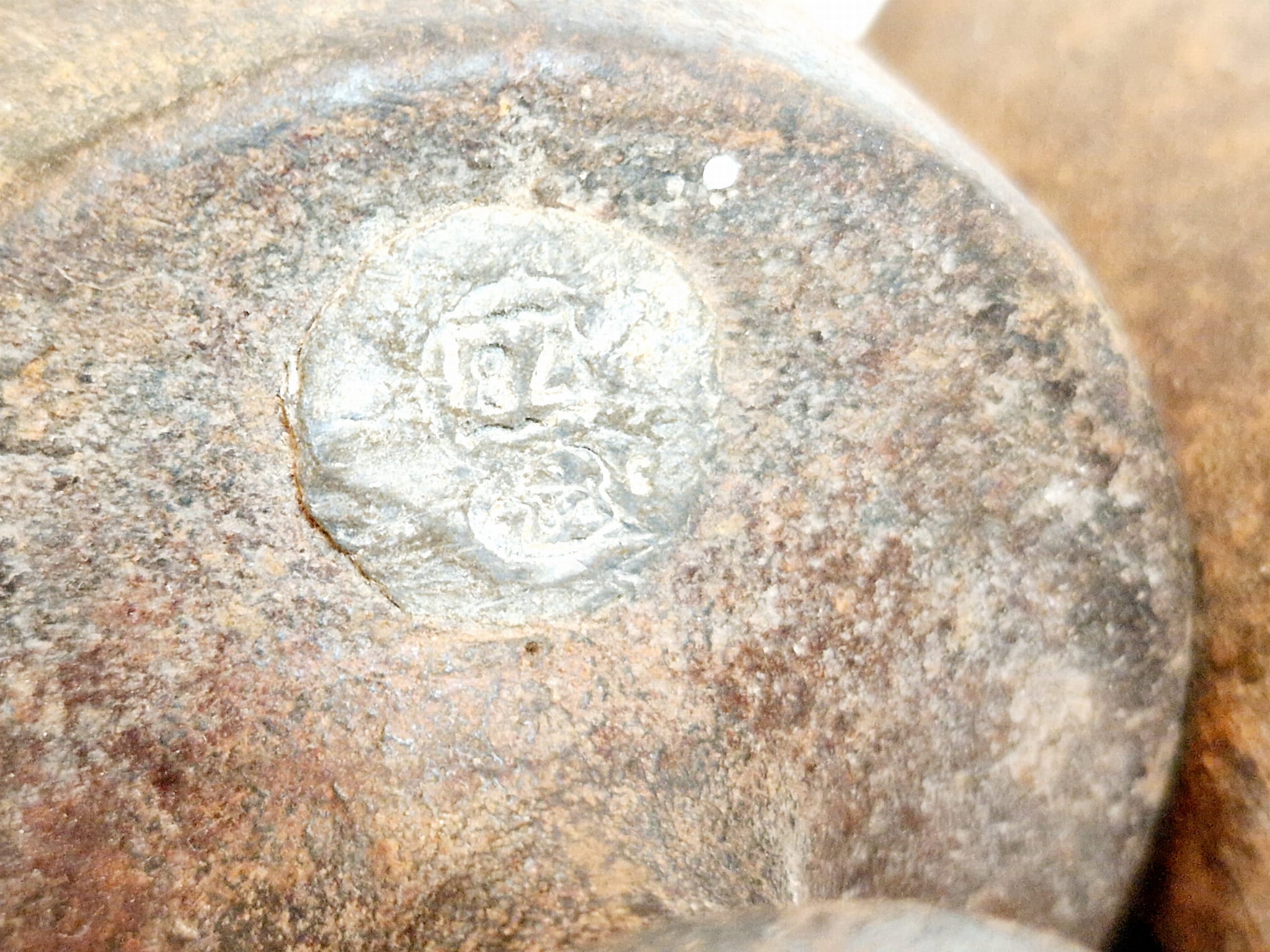 Gniazda tarownicze odważników zaplombowane ołowianymi wkładkami legalizacyjnymi z polskimi znakami legalizacji.