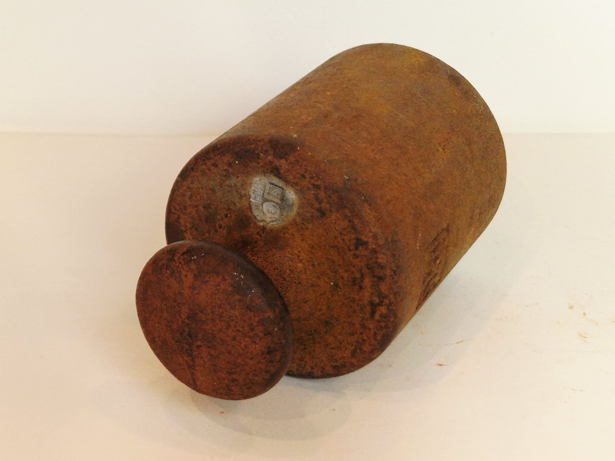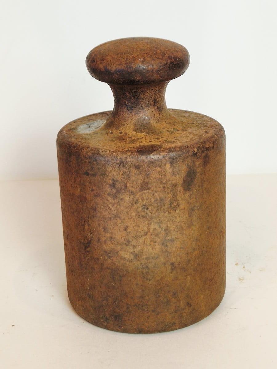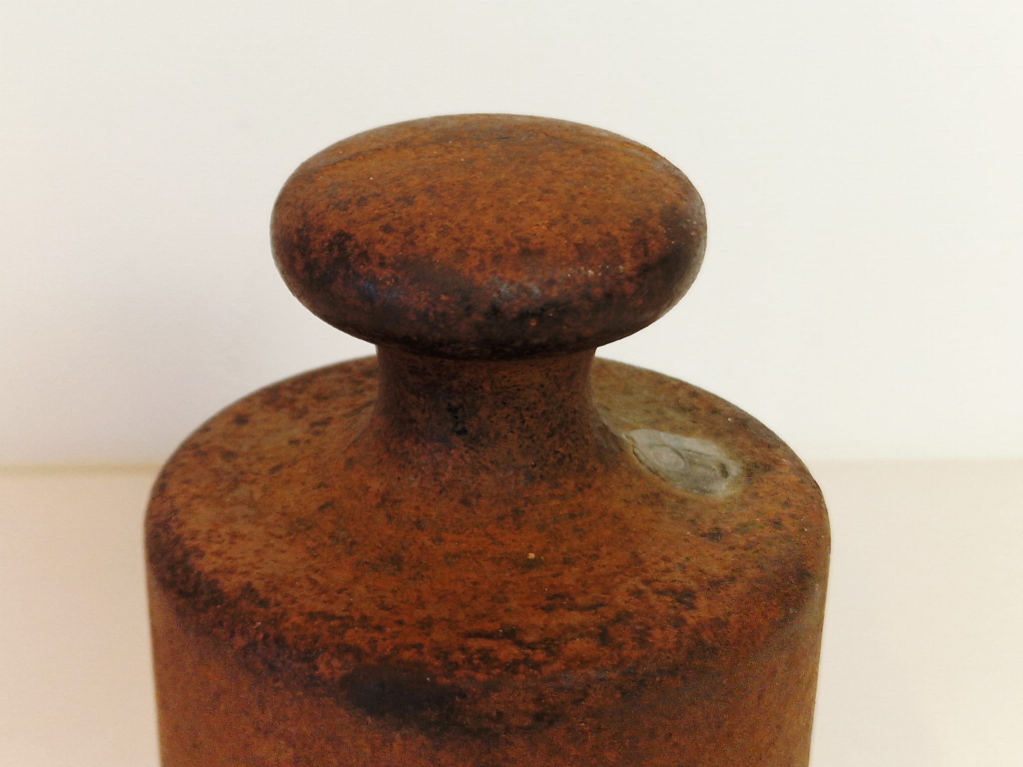 Powierzchnia odważnika pokryta delikatnym rdzawym nalotem - bez głębszych wżerów korozji.