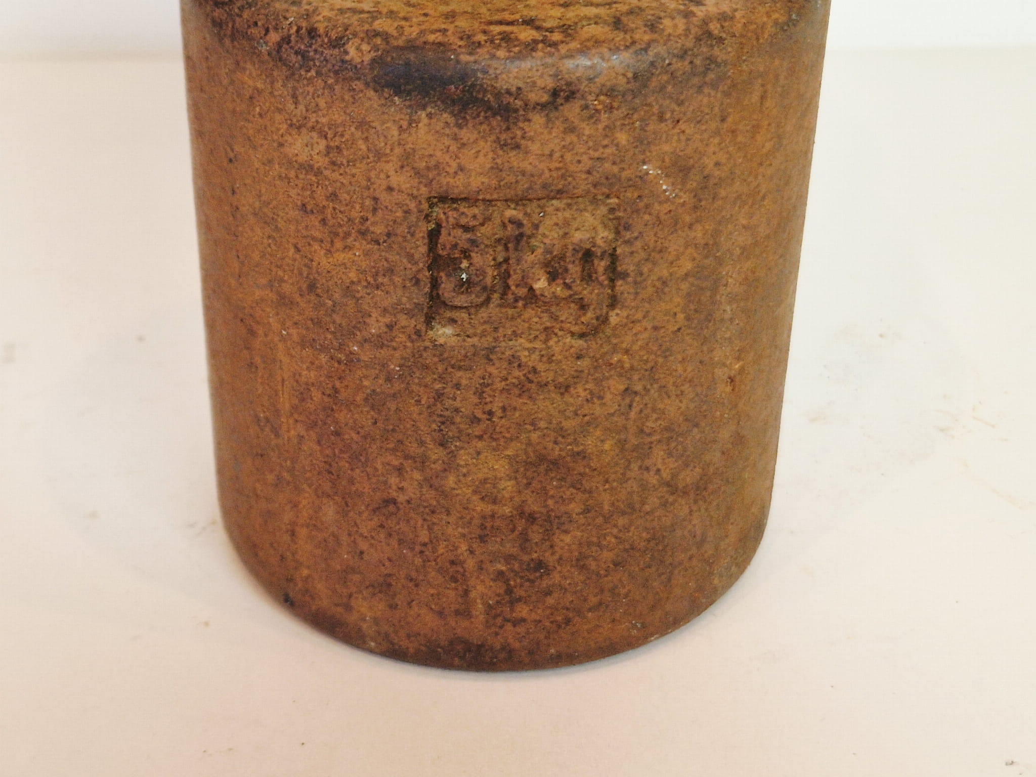 (l. 50 / 60-te XX w) "5kg" - ZABYTKOWY ŻELIWNY ODWAŻNIK HANDLOWY