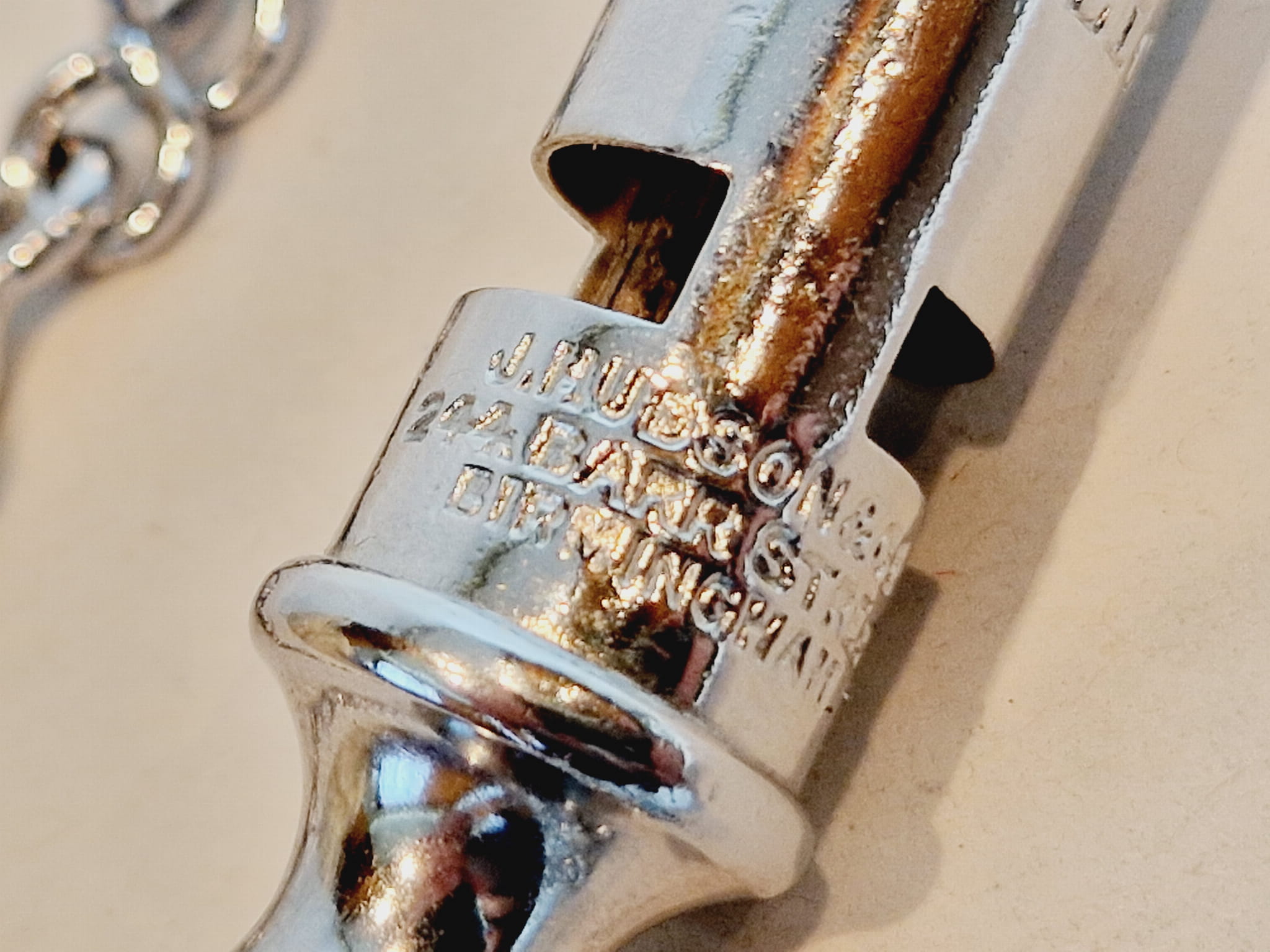 (l. 50 / 60-te XX w) ANGLIA BIRMINGHAM - GWIZDEK POLICYJNY Z ŁAŃCUSZKIEM