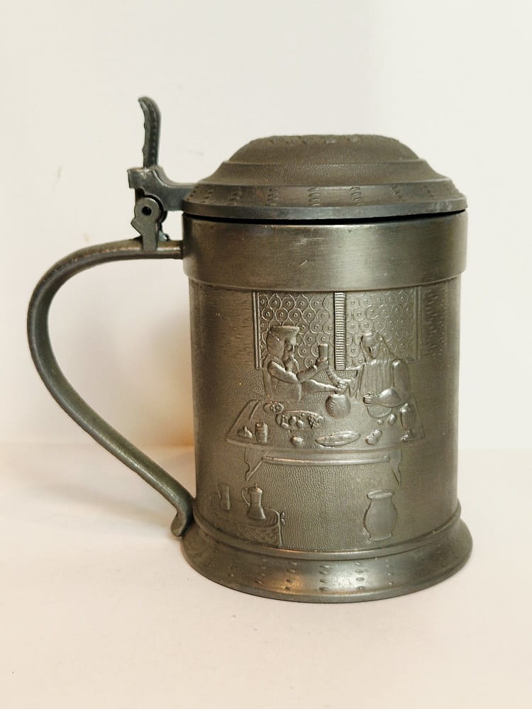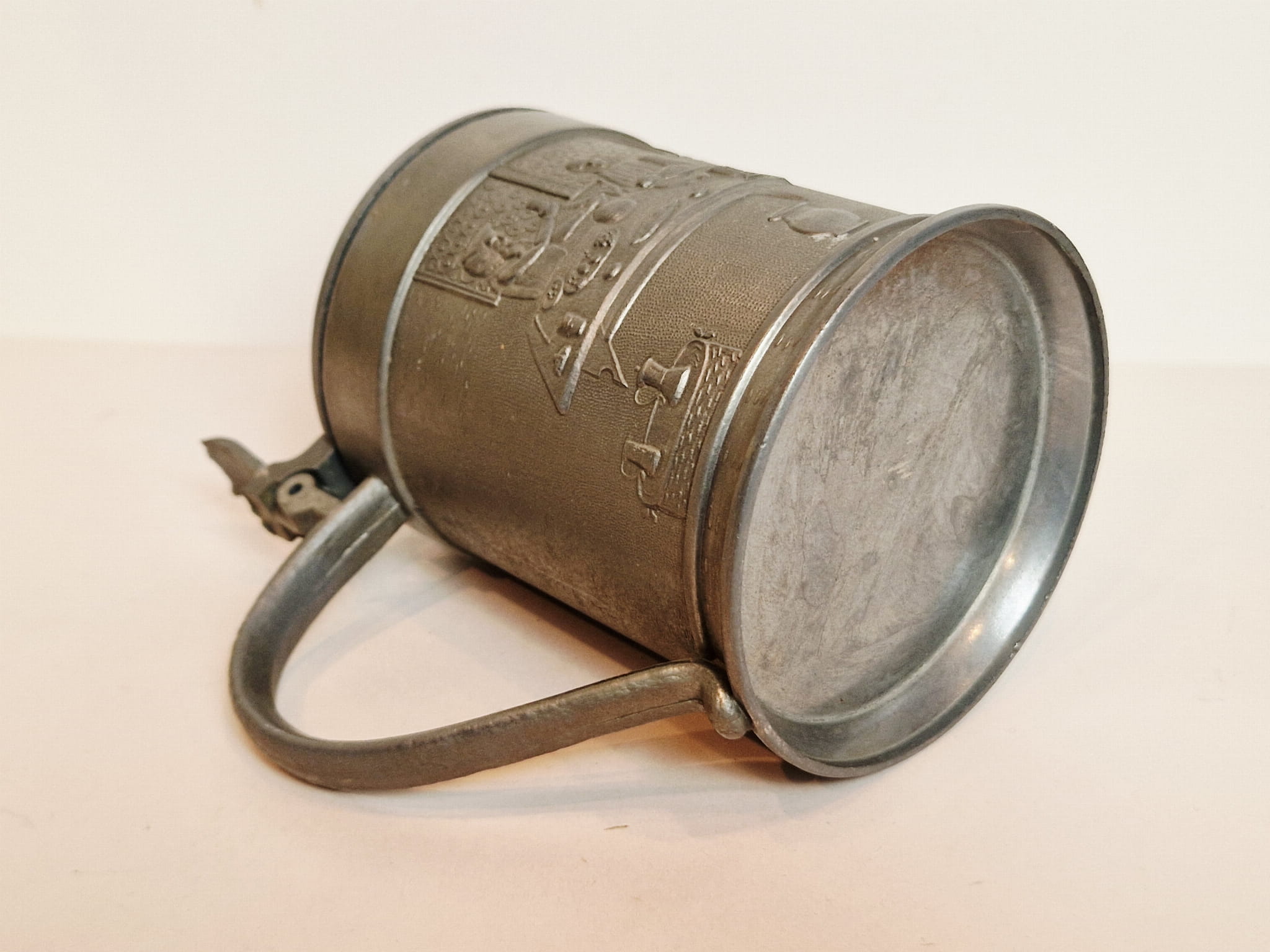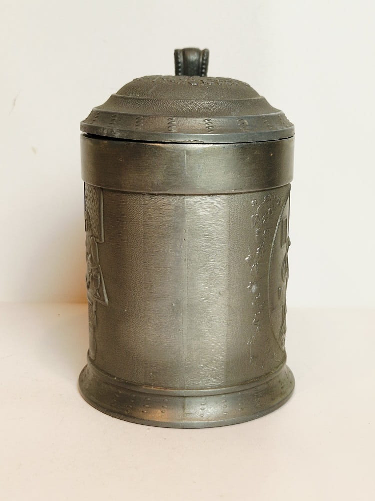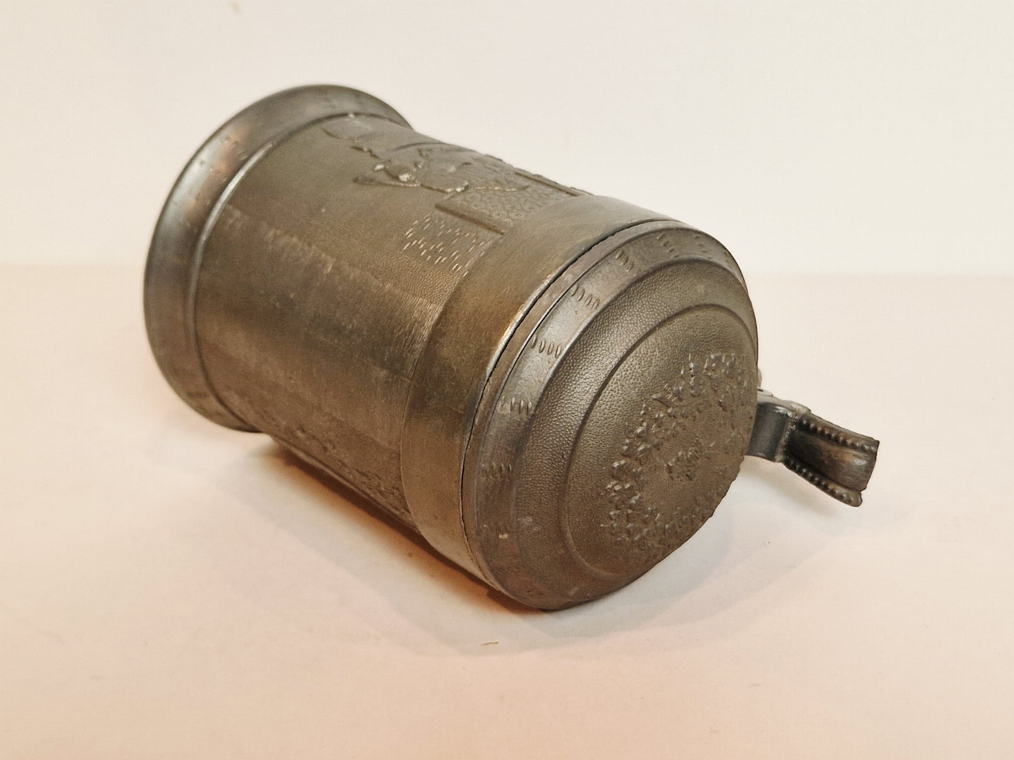 (l. 50 / 60-te XX w) KOLEKCJONERSKI KUFEL CYNOWY Z CYNKALOWĄ POKRYWKĄ