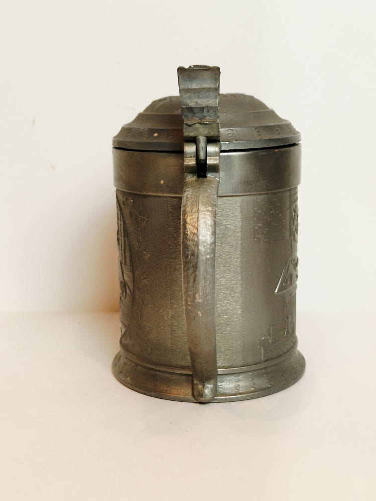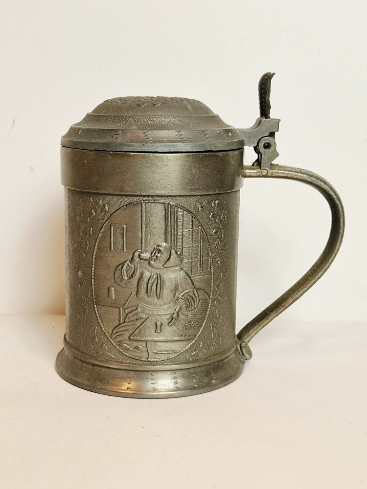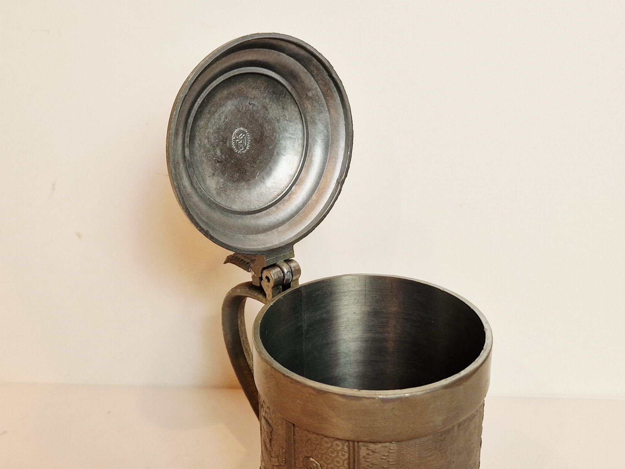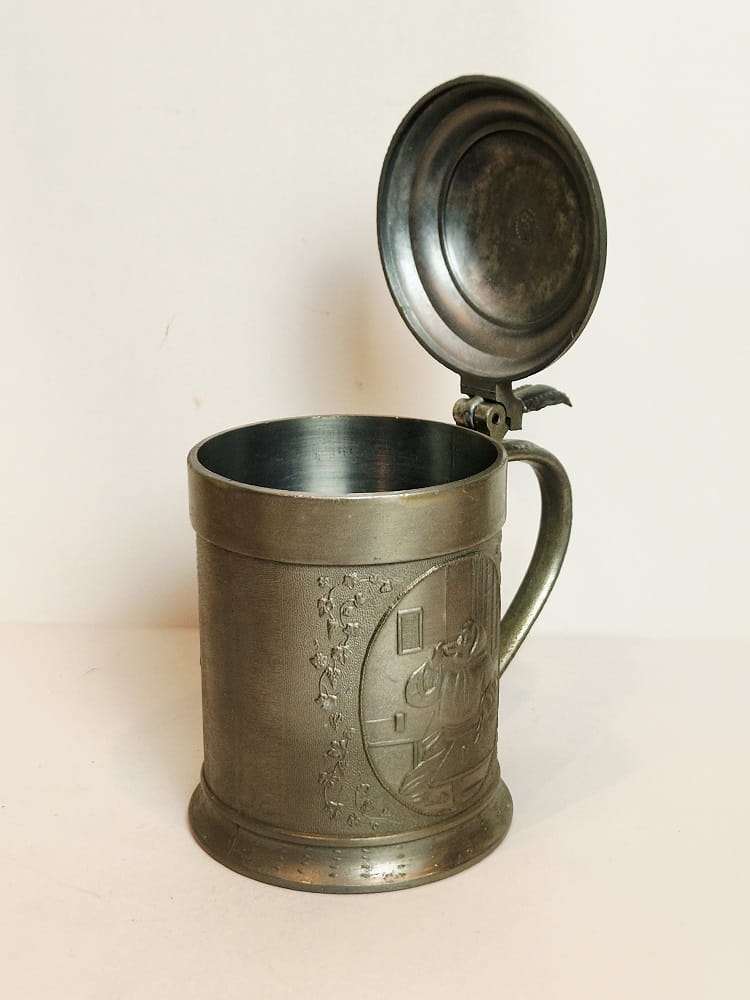 (l. 50 / 60-te XX w) KOLEKCJONERSKI KUFEL CYNOWY Z CYNKALOWĄ POKRYWKĄ