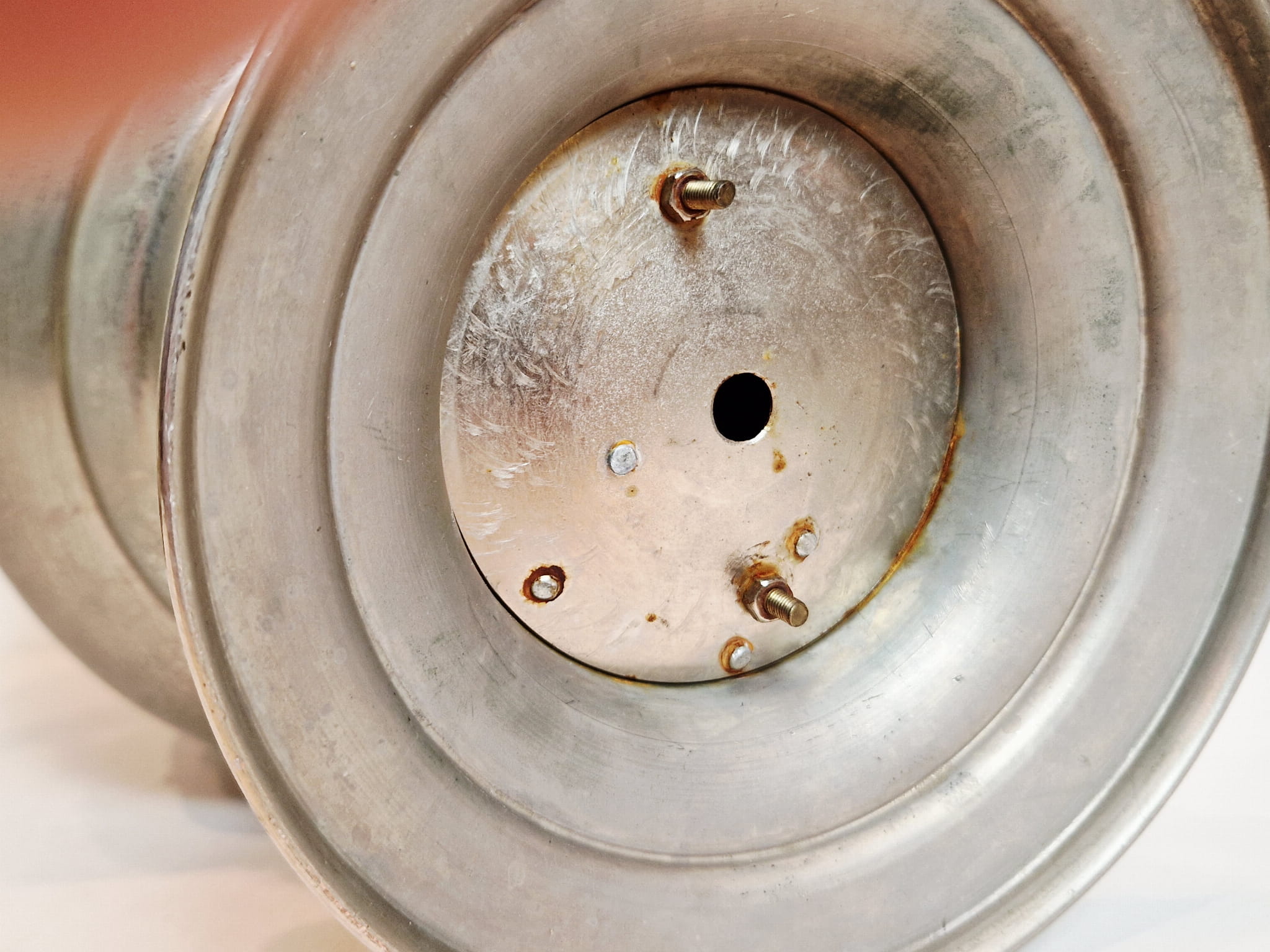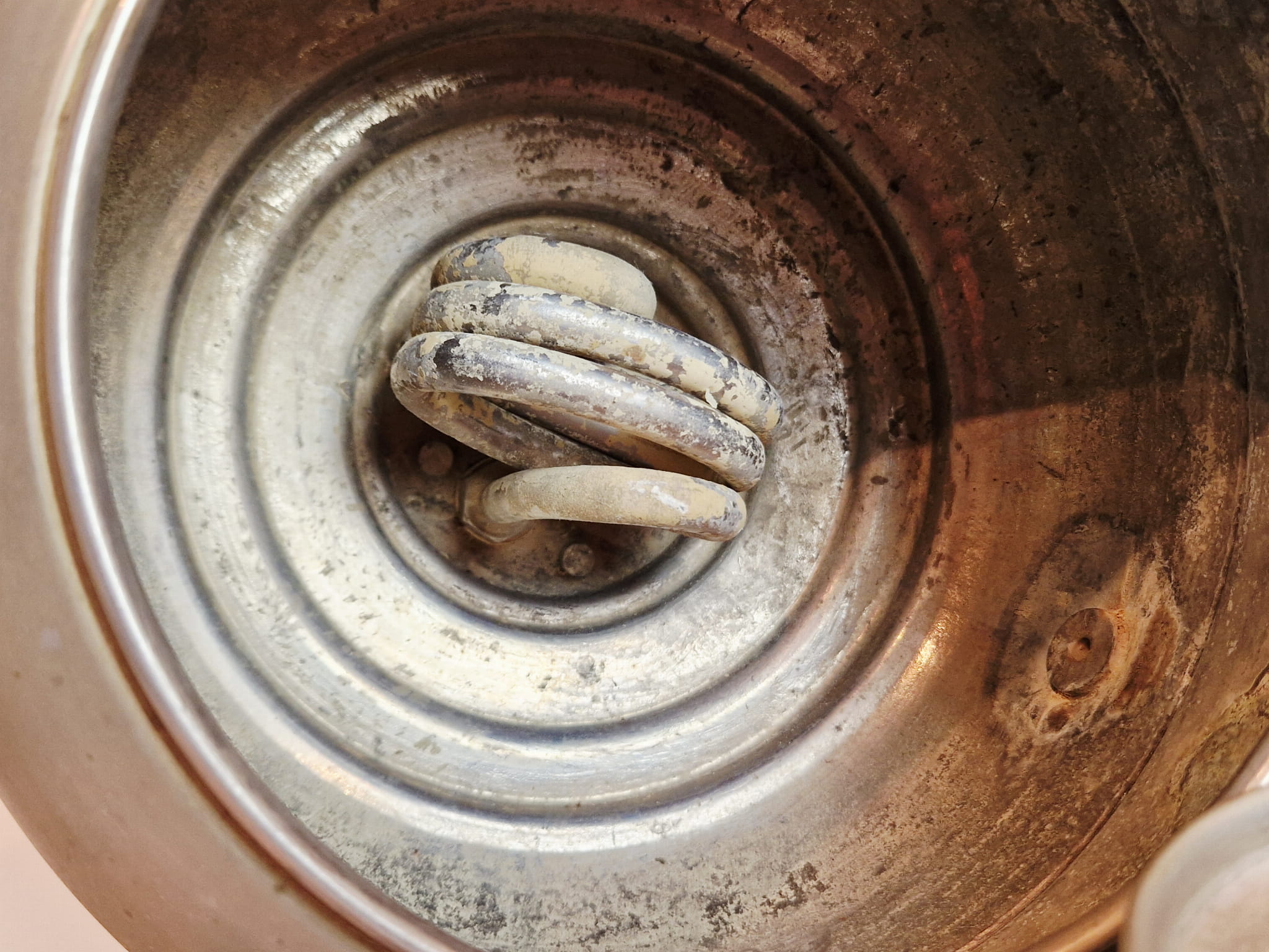 Wnętrze samowara pokryte delikatnym kamiennym nalotem.