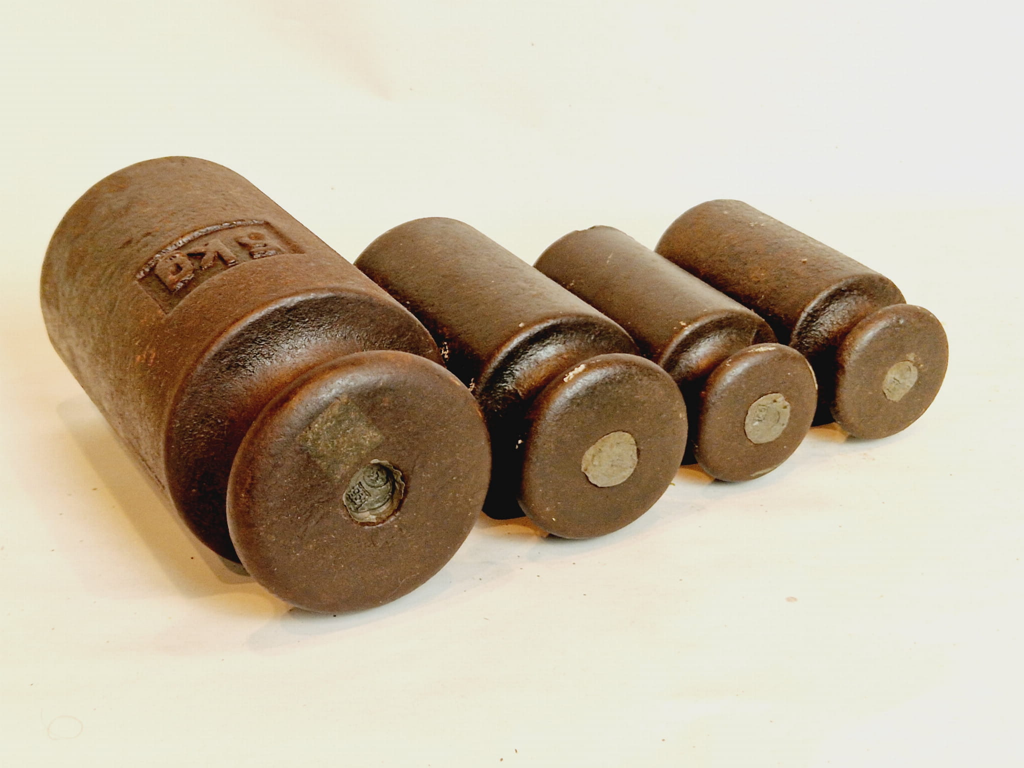 Odważniki zachowane w bardzo dobrym stanie kolekcjonerskim.