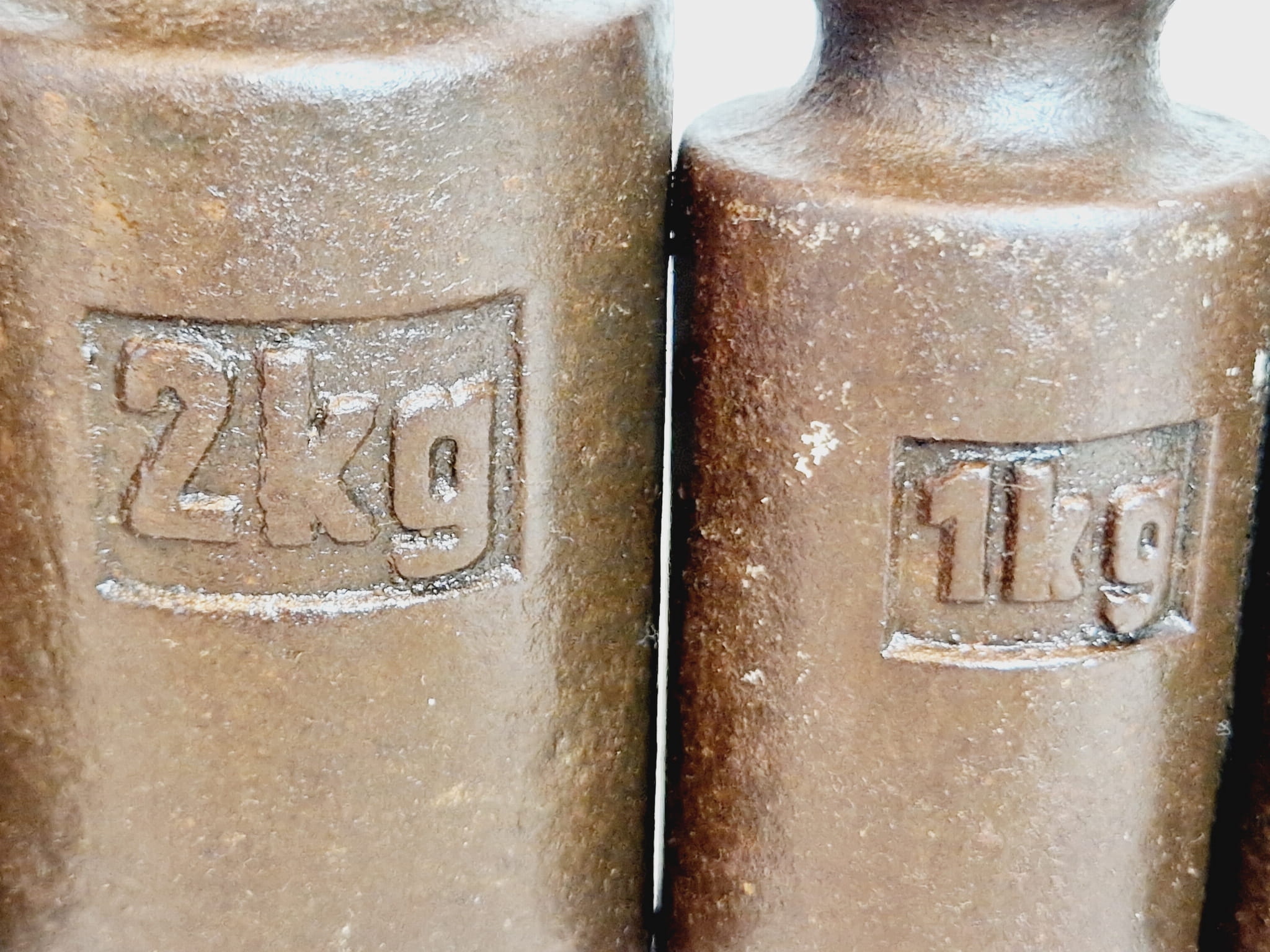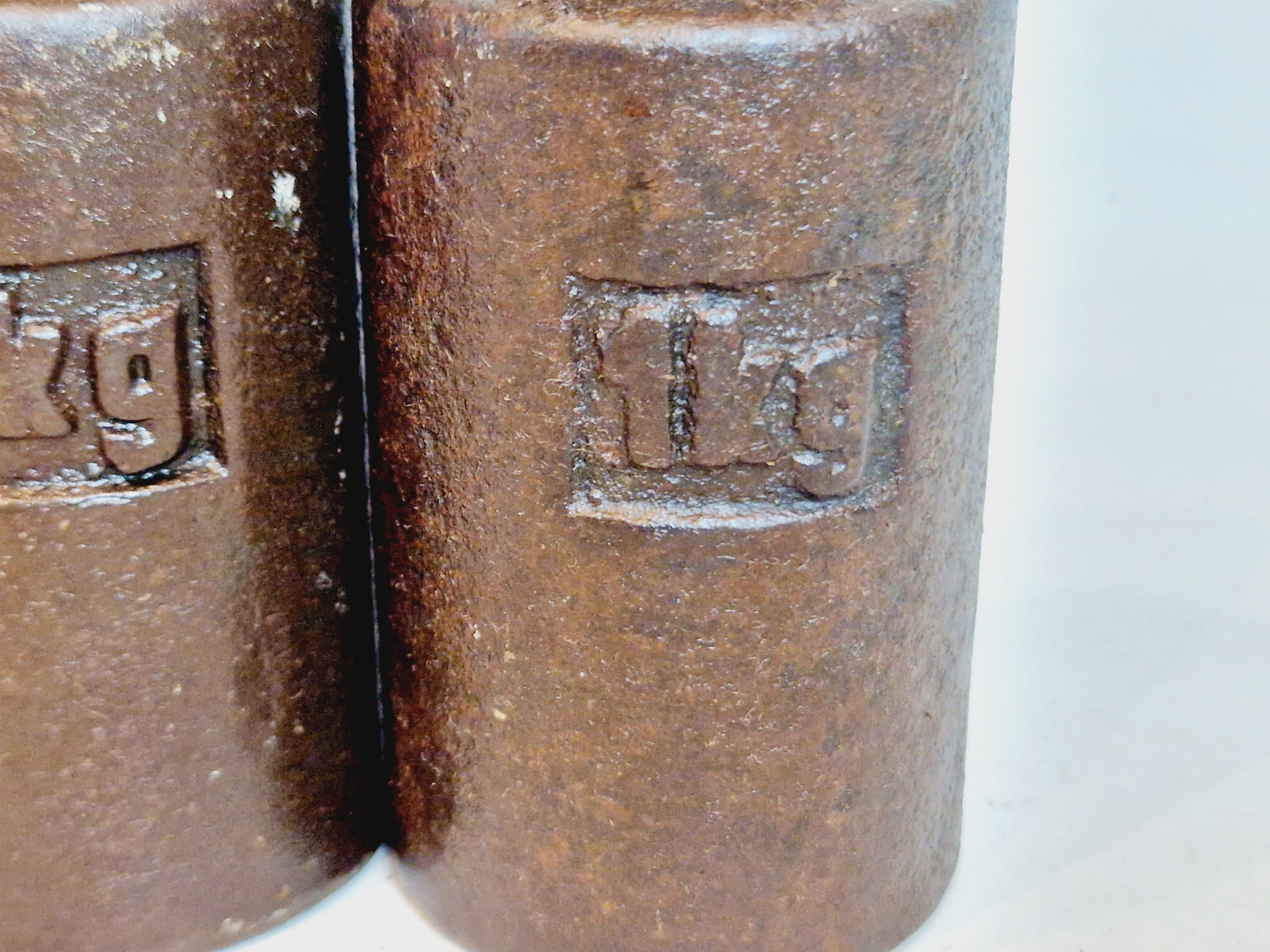 Powierzchnie odważników pokryte są rdzawym nalotem - bez głębszych wżerów korozji.