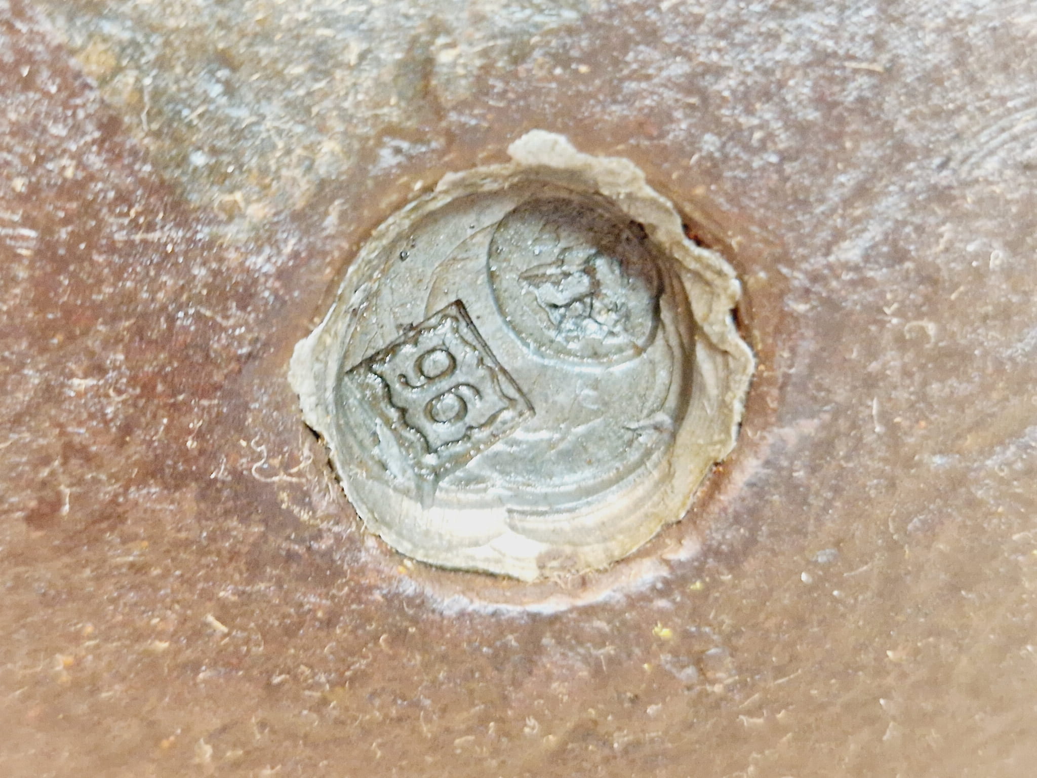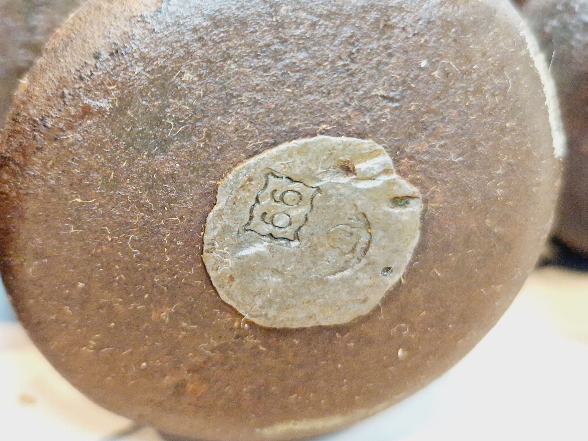 Gniazda tarownicze odważników zaplombowane ołowianymi wkładkami legalizacyjnymi z polskimi znakami legalizacji.