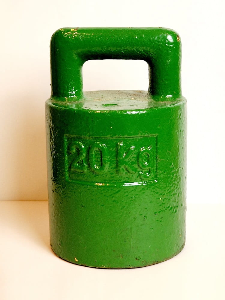STARY (l. 60 / 70-te XX w) WIELKI (20 kg) ŻELIWNY METRYCZNY POLSKI ODWAŻNIK HANDLOWY
