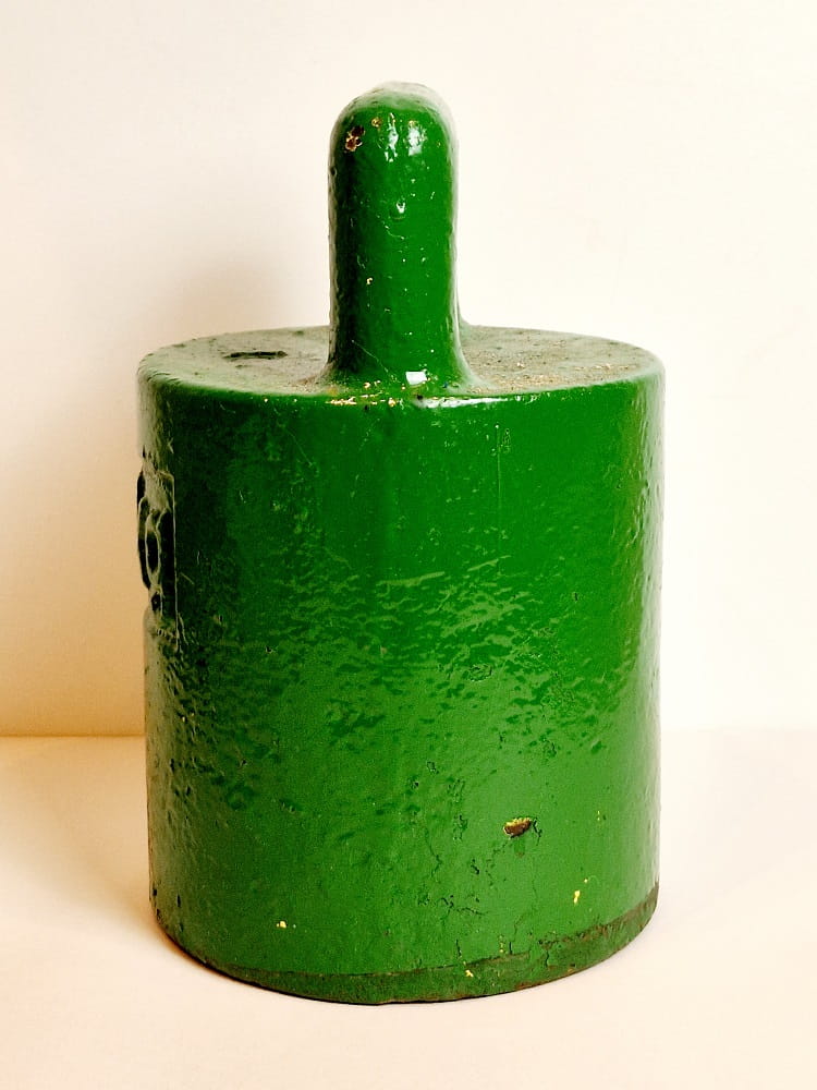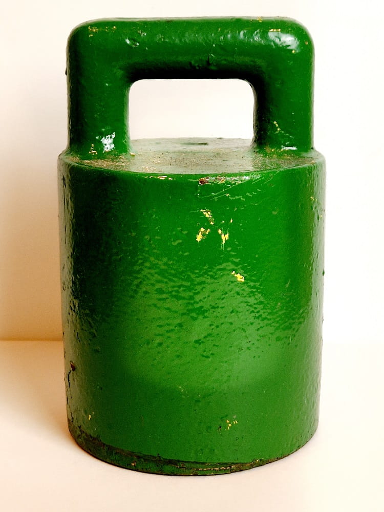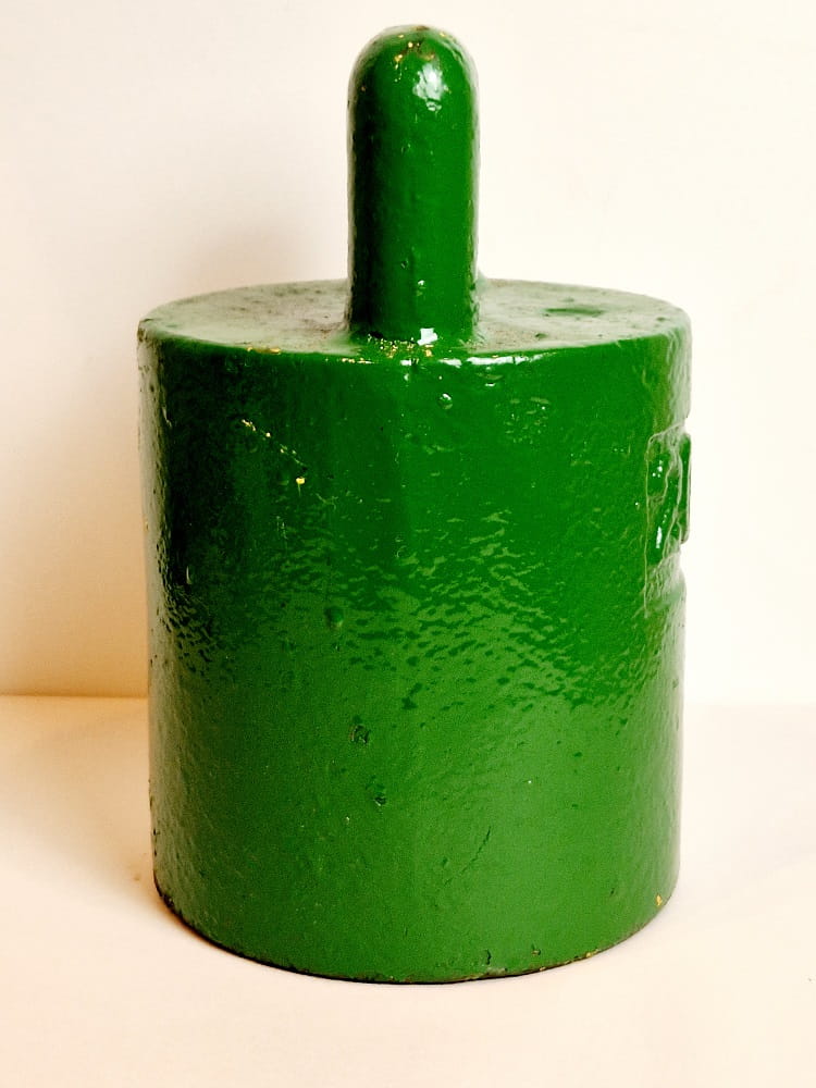 Odważnik pomalowany zielonym lakierem (niewielkie odpryski farby).