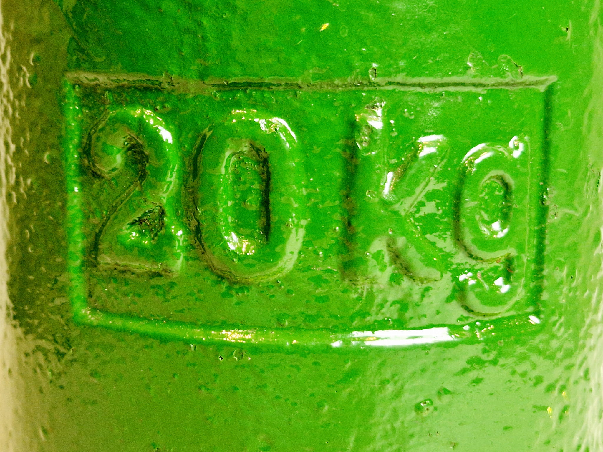 Odważnik pomalowany zielonym lakierem (niewielkie odpryski farby)...