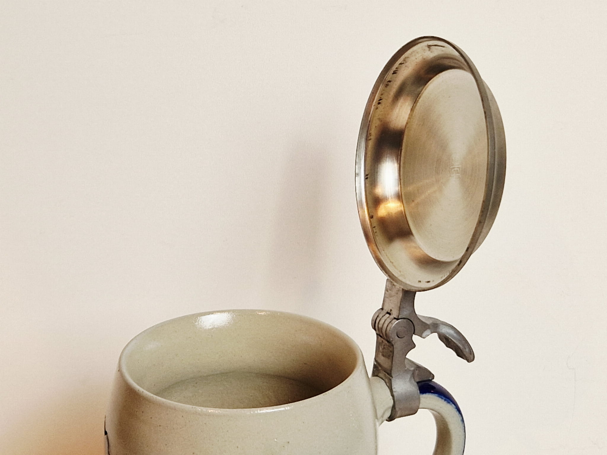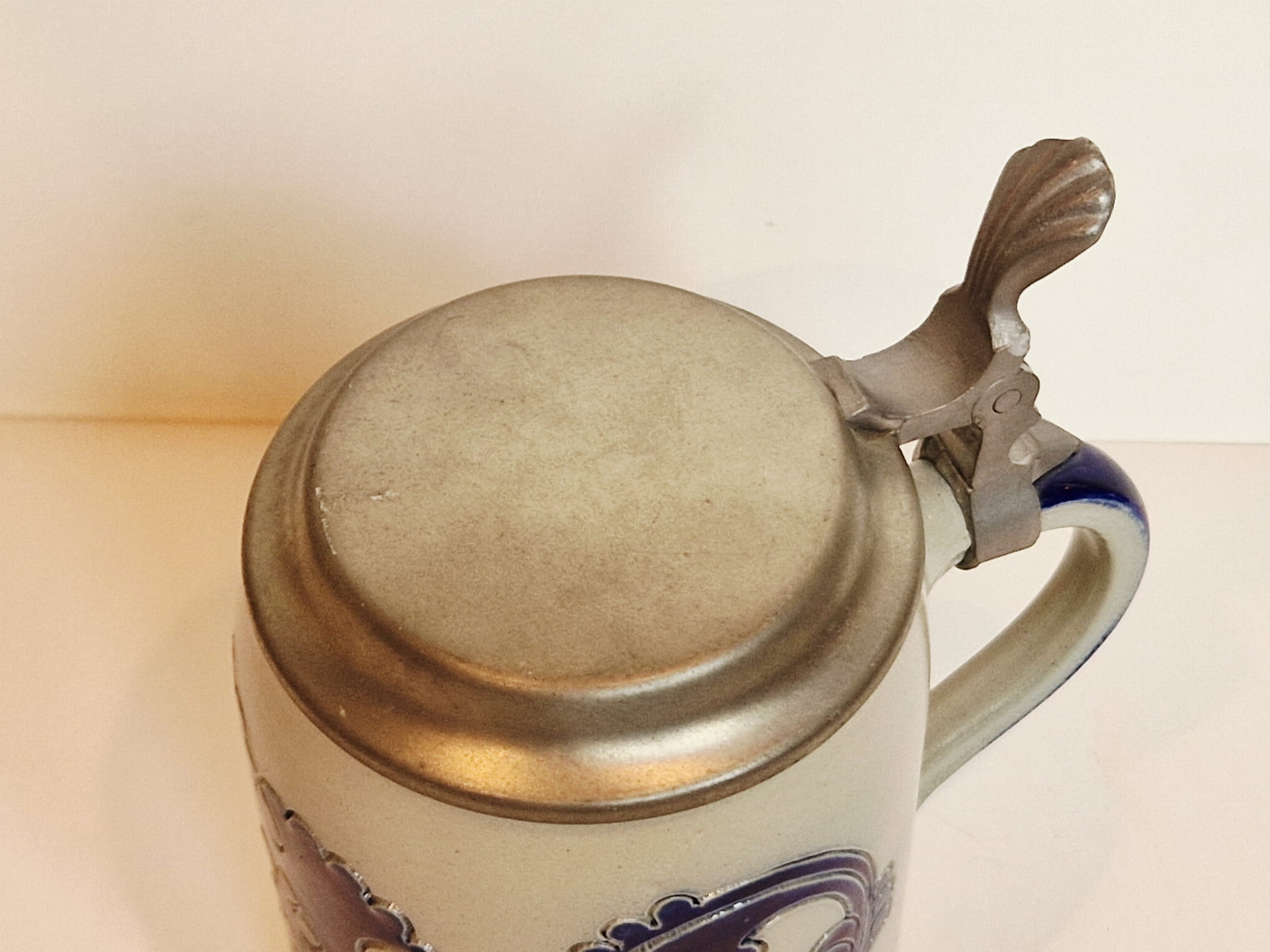 Płaski dekiel kufla z minimalnymi przytarciami...