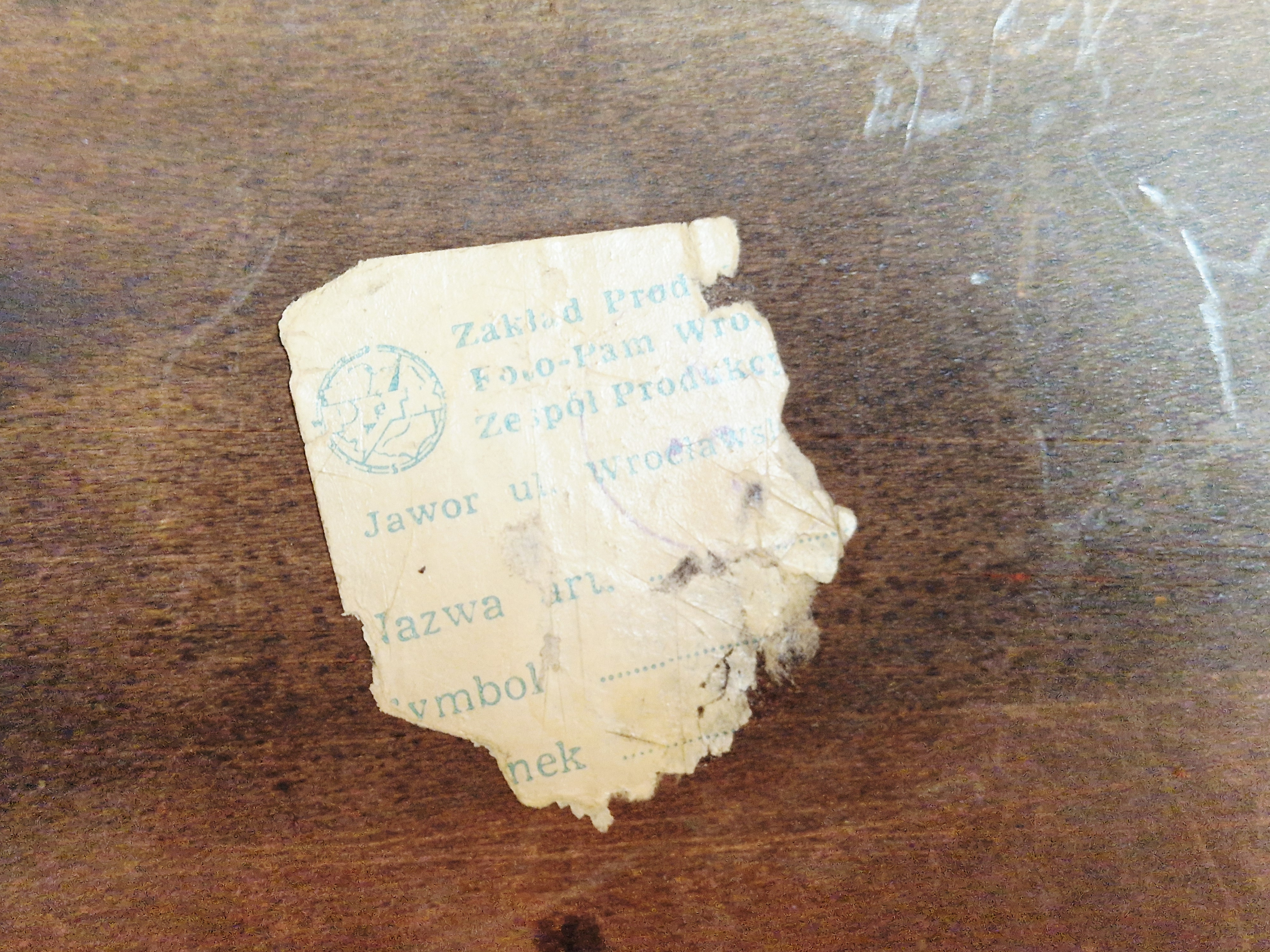 Na spodzie skrzynki zachowany fragment etykiety wytwórczej / handlowej...