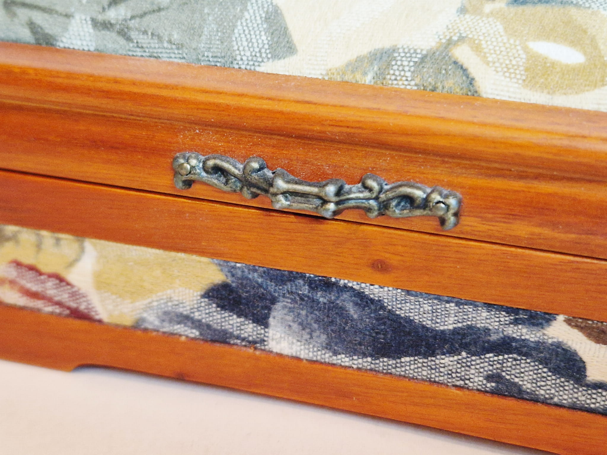 (drewno + okładzina materiałowa + mosiężne okucie)