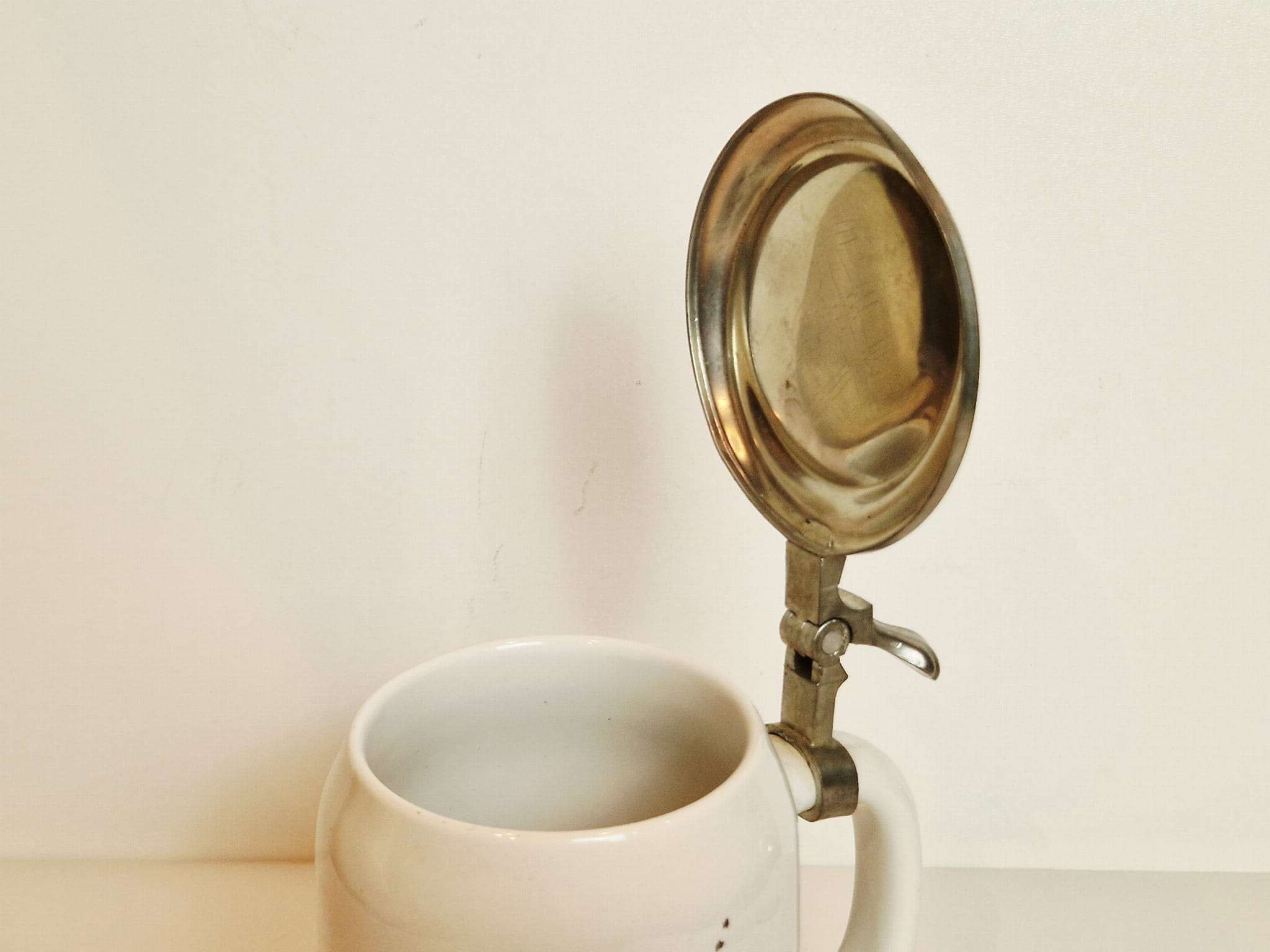 Płaski dekiel kufla z umiarkowanymi przytarciami...