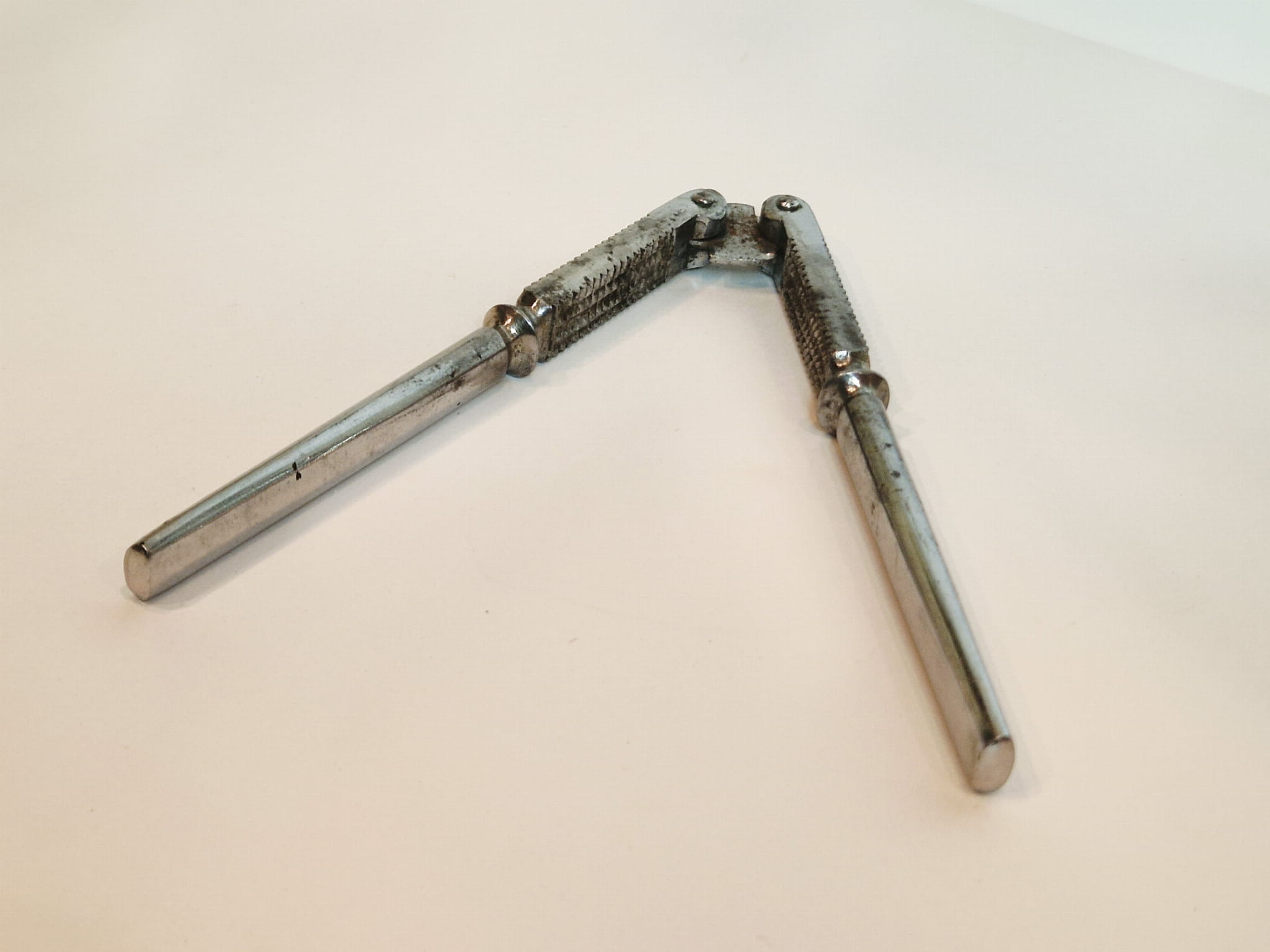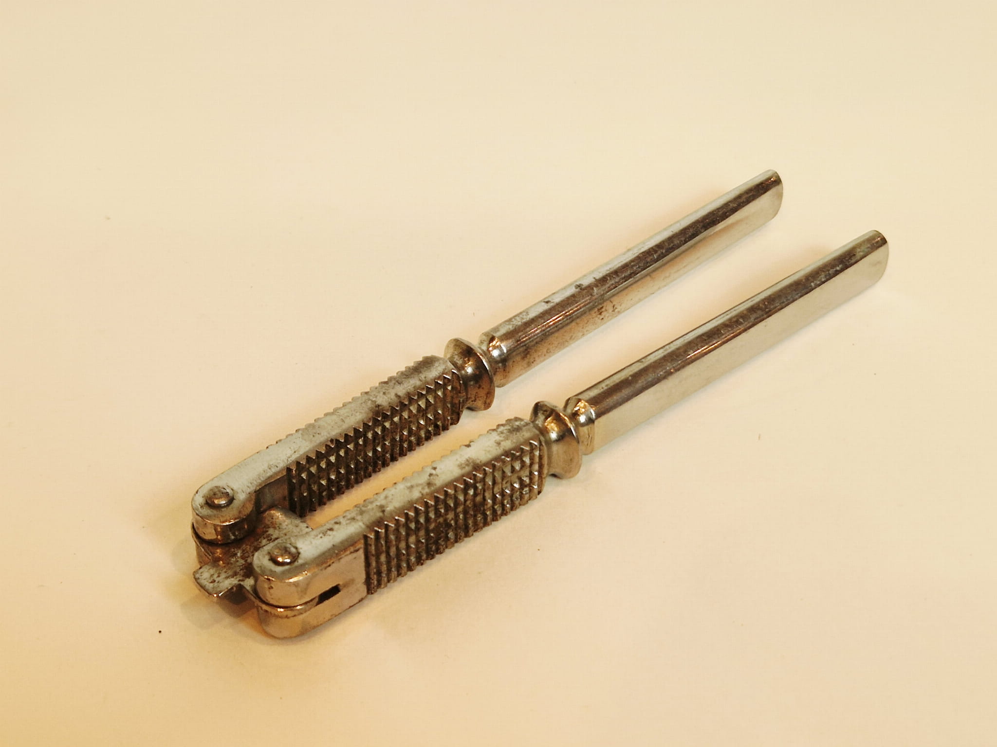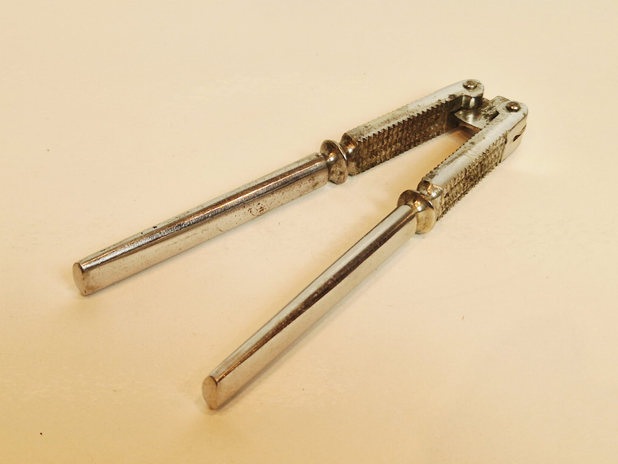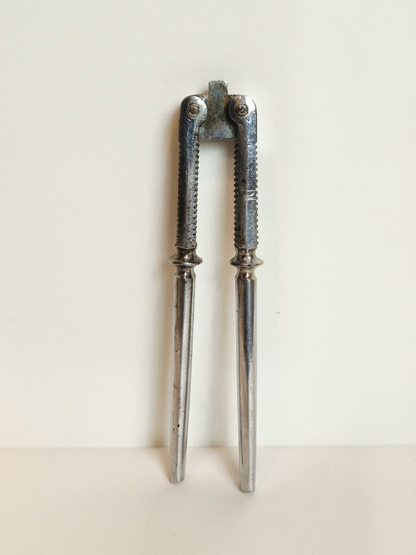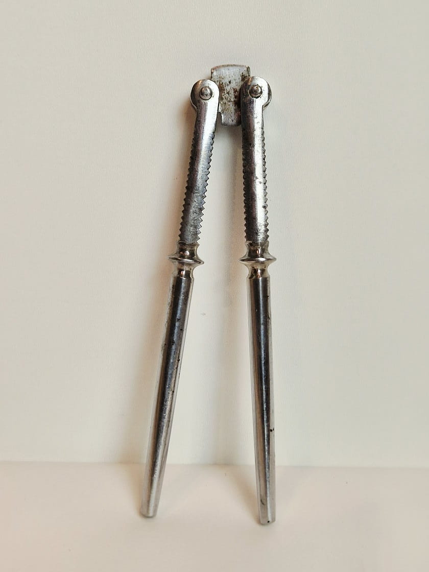 STARY (poł. XX w) MASYWNY (167 g) ŻELAZNY (niklowany) ZGNIATACZ - DZIADEK DO ORZECHÓW